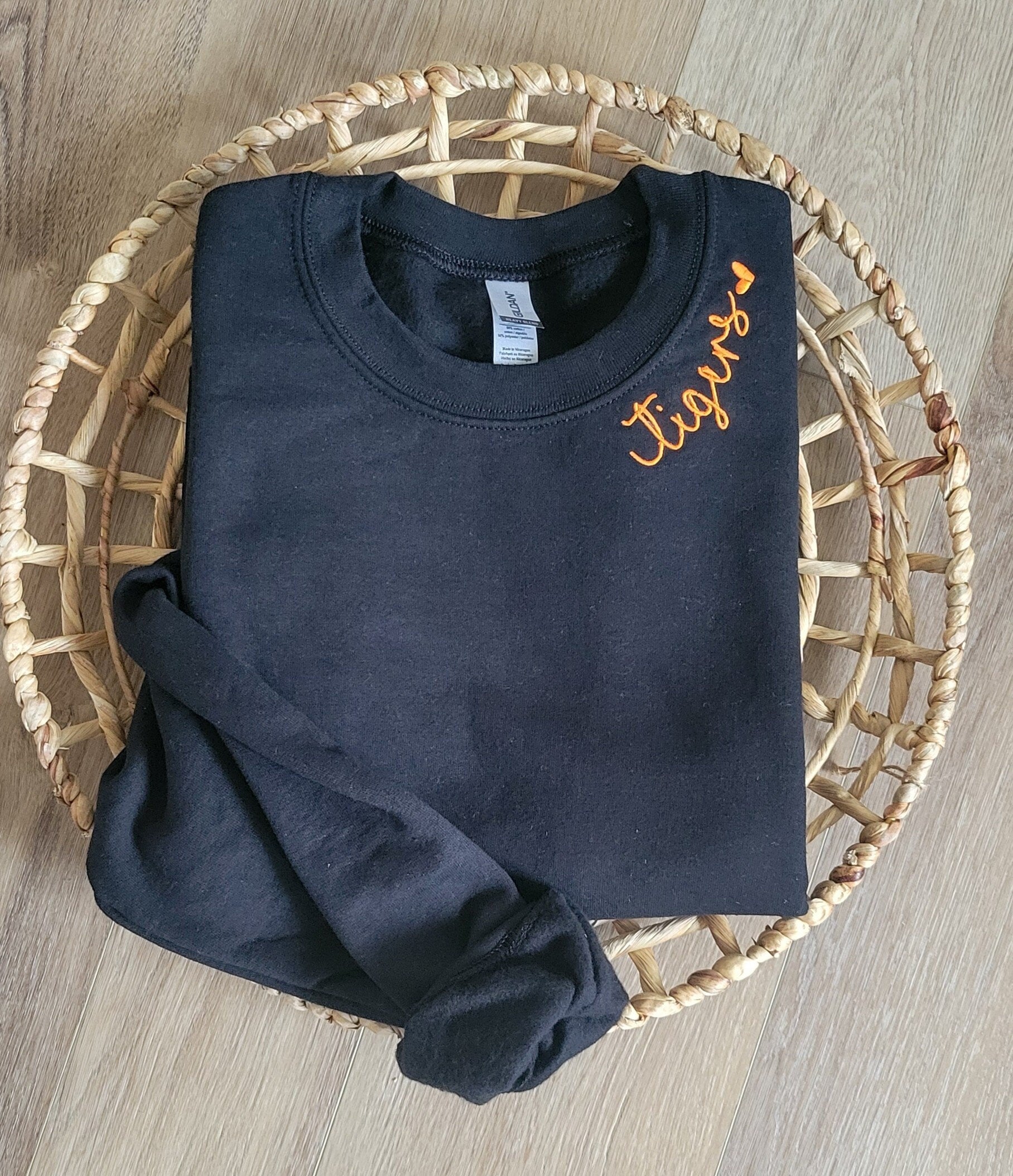 Custom Embroidered Sweatshirt, High School Mascot Embroidered Sweatshirt, Embroidered Collar Sweater, School Spirit Pullover, Cheer Mom