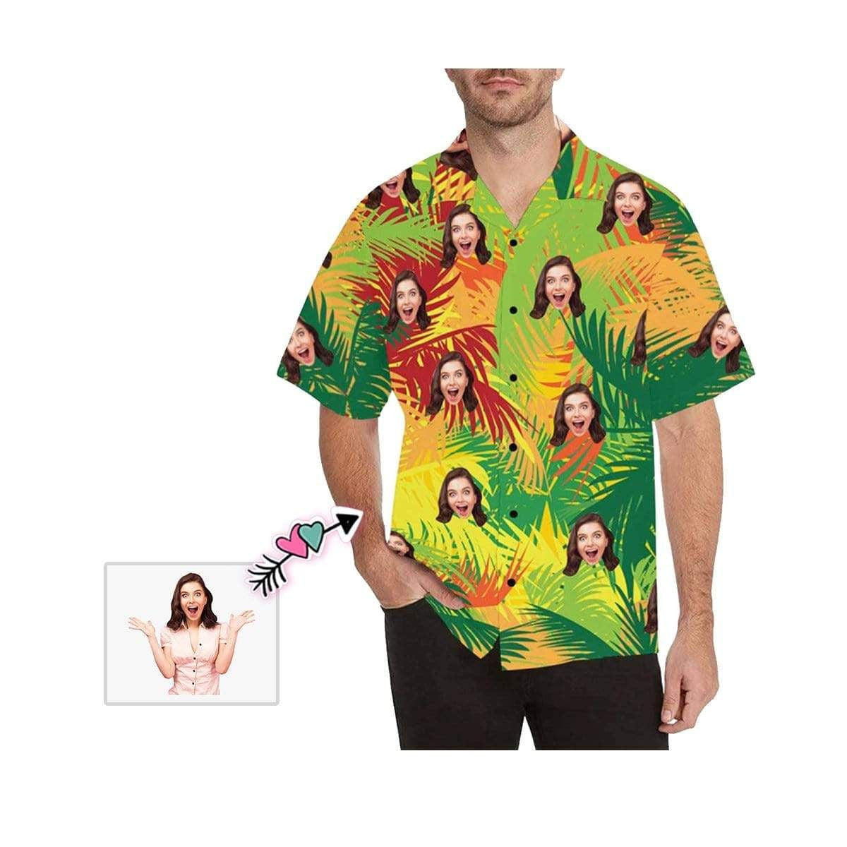 Custom Face Beautiful Leaves Men's Hawaiian Shirt,Hawaiian Shirt Gift, Christmas Gift
