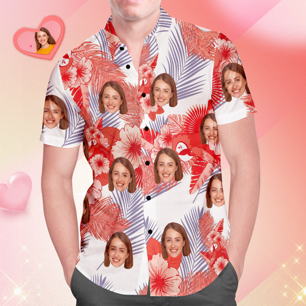 Custom Face Hawaiian Shirt All Over Print Men's Shirt Blue Floral