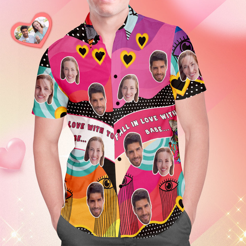 Custom Face Hawaiian Shirt All Over Print Men's Shirt Hippie Cat