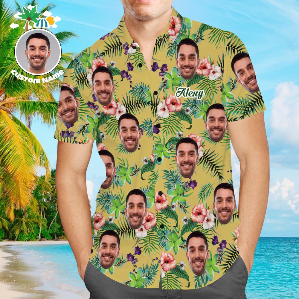 Custom Face Shirt with Text Men's Hawaiian Shirt Fashion Apparel