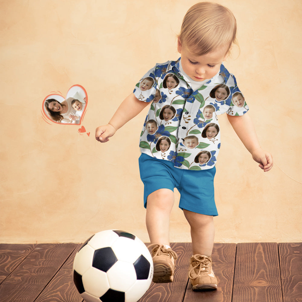 Custom Face Shirt Women's and Kids Hawaiian Shirts Short Sleeve Shirt Mother's Day Gift Blue Flowers