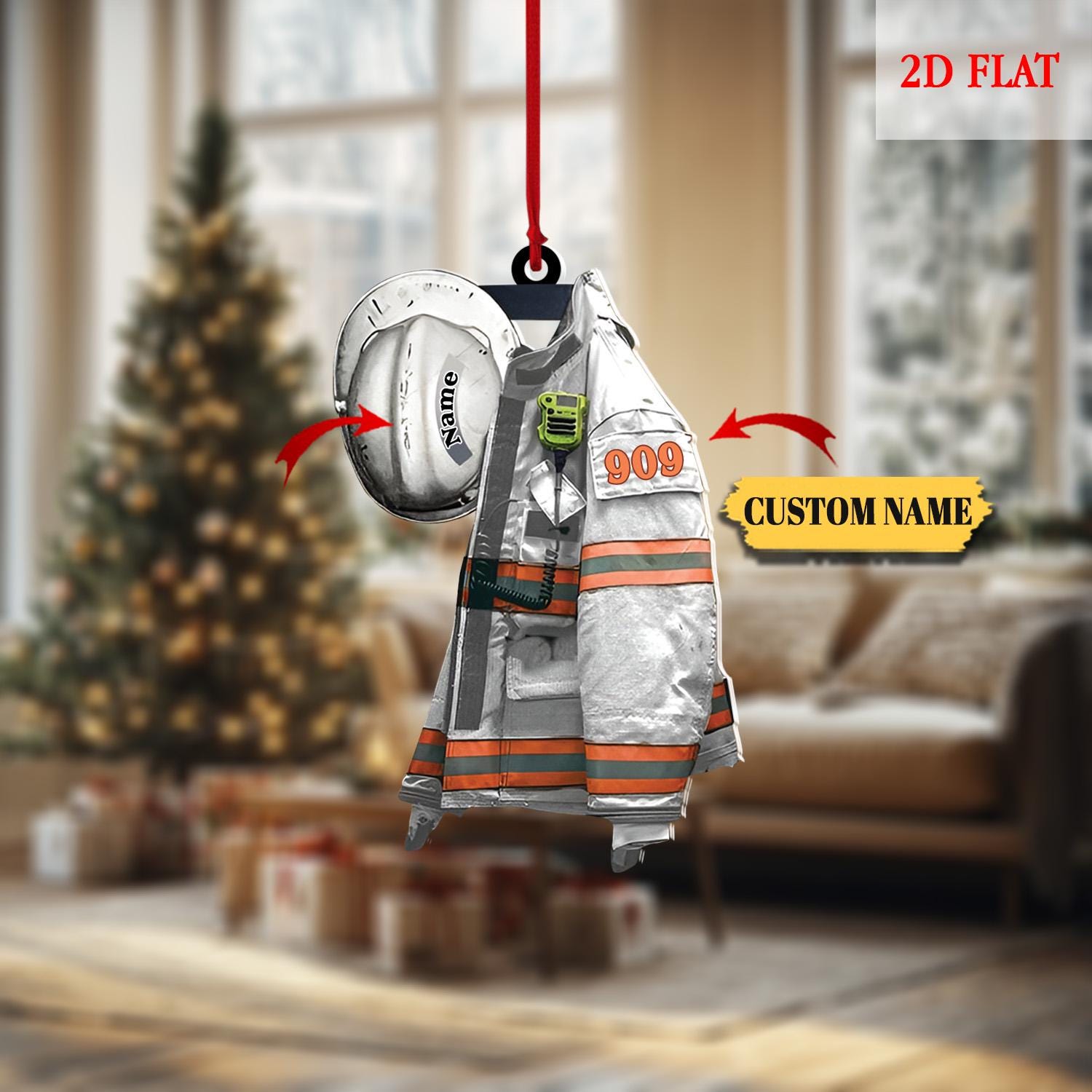 Custom Firefighter Uniform 2D Flat Ornament, Chirstmas Gift for Dad Papa, Firefighter Gift, Firefighter Hanging Ornament, Xmas Decor