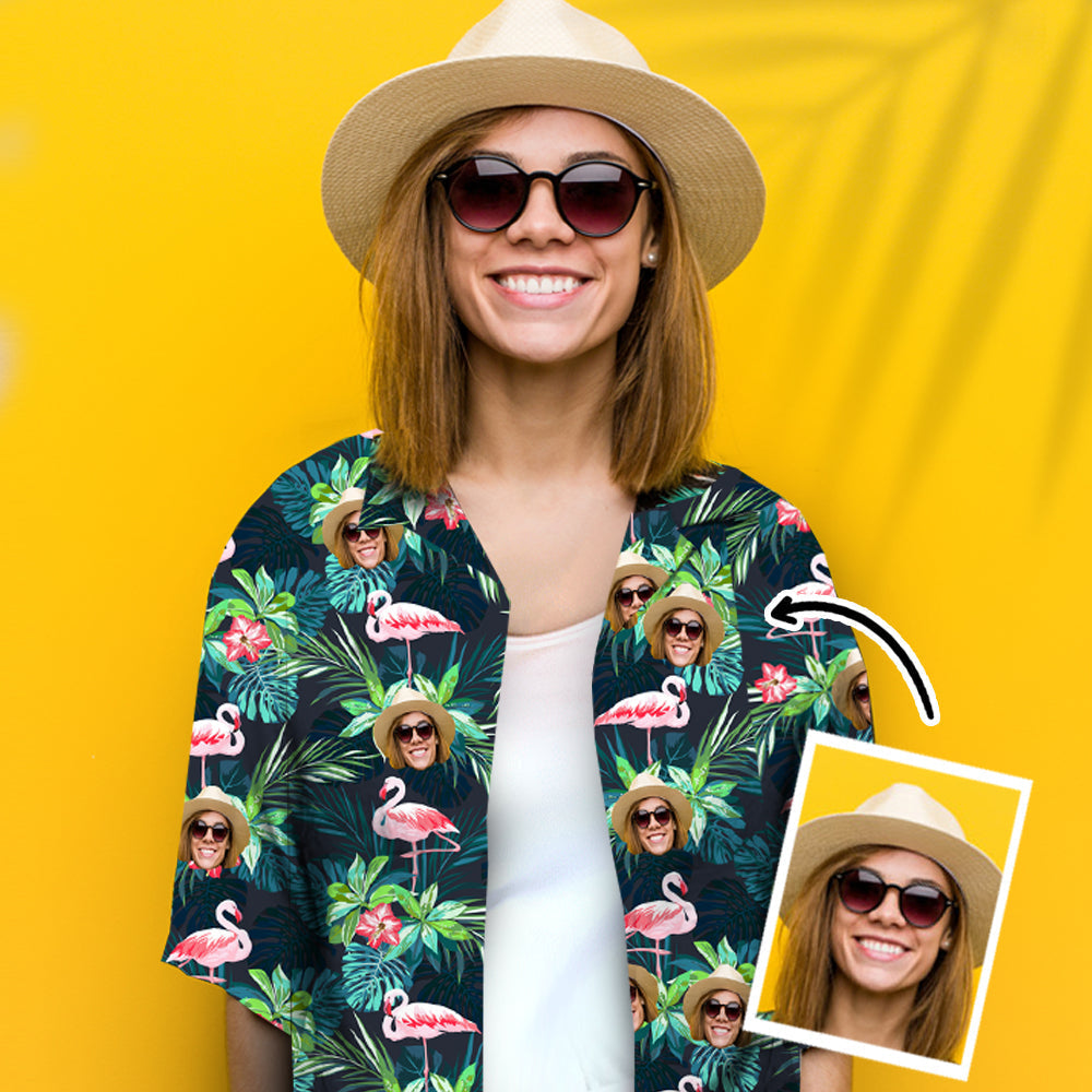Custom Hawaiian Shirt with Dog on It Flamingo Flowers And Leaves Shirt for Pet Owner