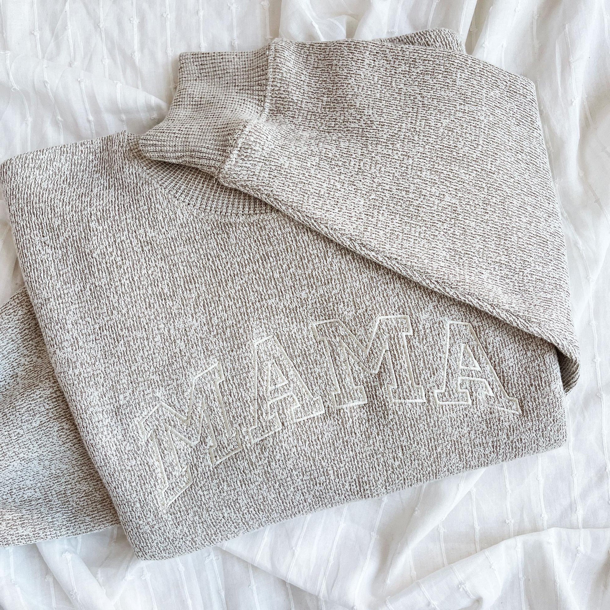 Custom MAMA Cozy Knit Fleece Pullover Crewneck Lane Sweatshirt| Embroidered MAMA Sweatshirt| Pregnancy Announcement |Gift for Mom | LS11EMA1
