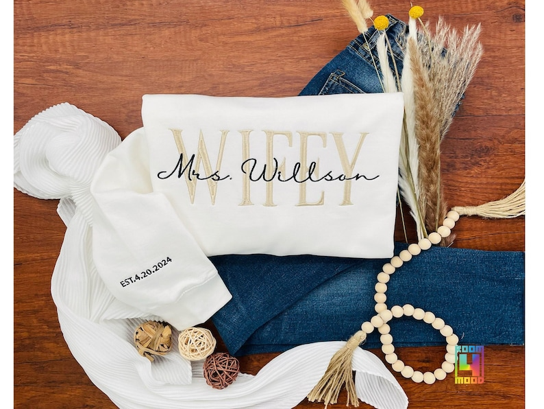 Custom Mrs. Embroidered Sweatshirt, Date On Sleeve, Personalized Gift for Bride, Wife Shirt, Future Mrs Wifey, Engagement Gift, Bride To Be