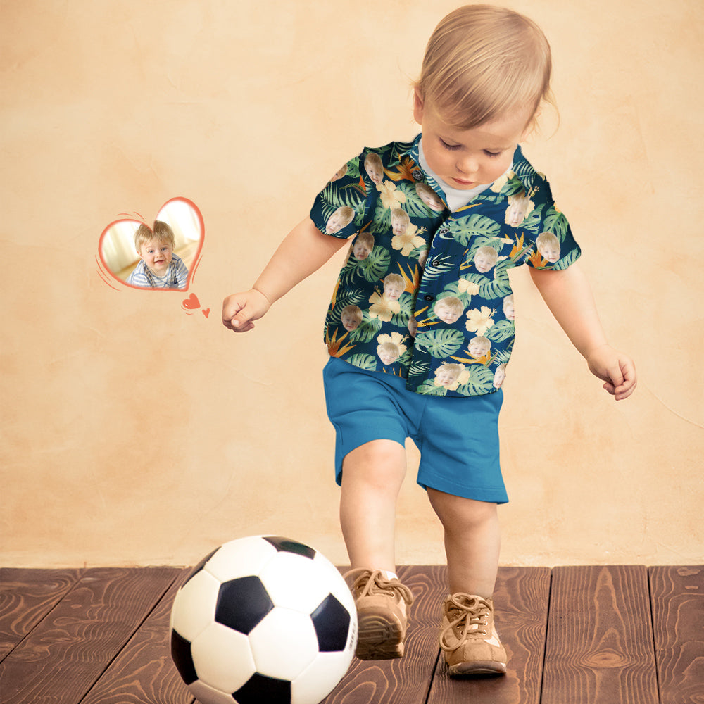 Custom Photo Hawaiian Shirt Parent-child Wears Personalised Face Hawaiian Shirt Gift for Family - Yellow Flowers