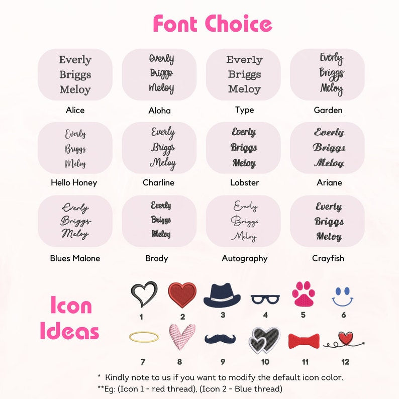- Full-thread embroidery $10 for : change design after receiving design proof, an additional embroidery and a new placement.