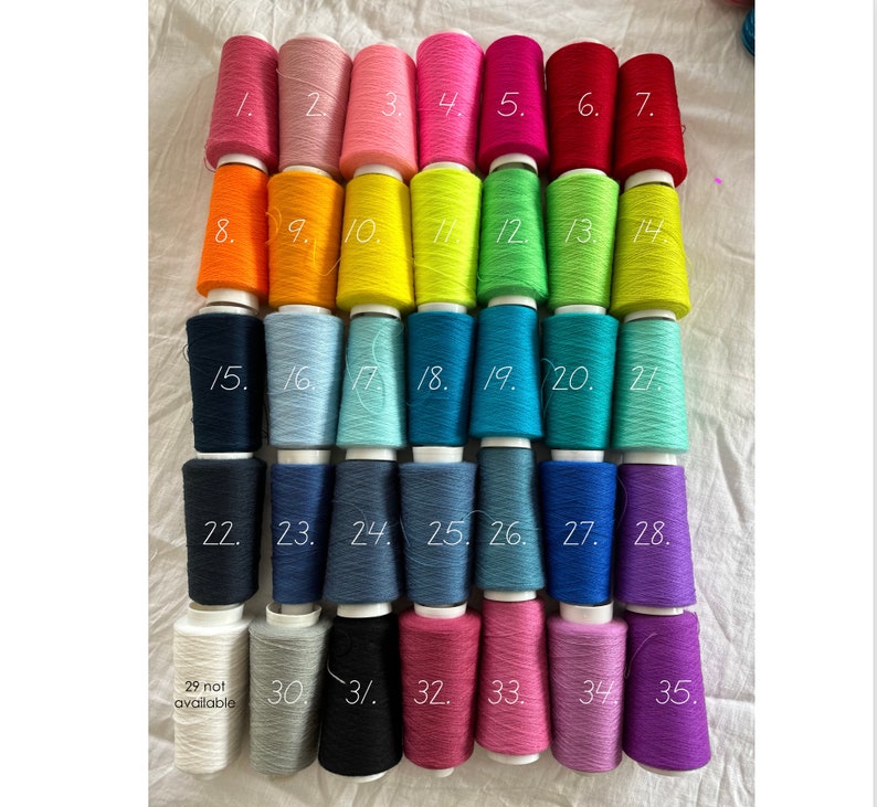 THREAD COLOR: I provided two charts of colors to choose from. Please indicate color number preference in the personalization box. If you had another color in mind, please message me first before ordering so it can be included in your purchase order, as I have additional threads available, I also try to best match school colors if a school is specified.