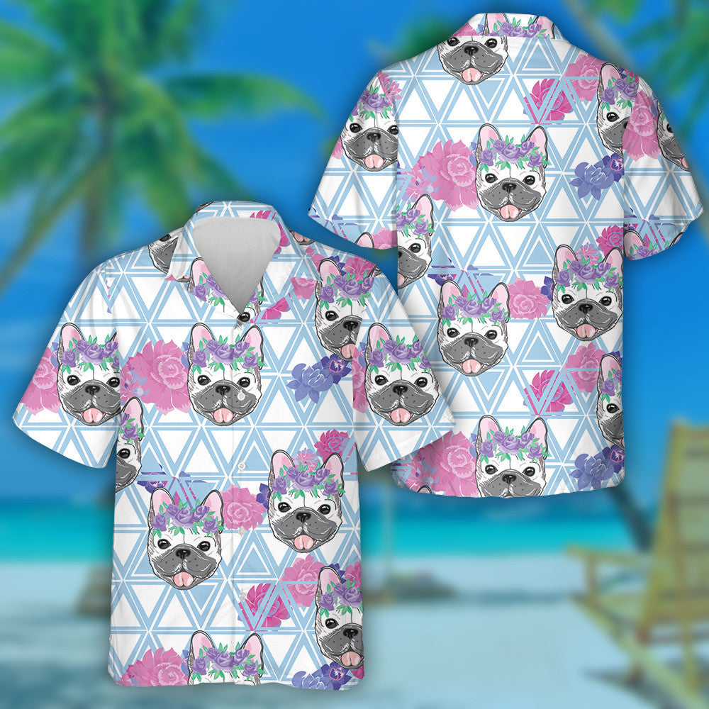 Cute Bulldogs Flower On Triangle Background Hawaiian Shirt,Hawaiian Shirt Gift, Christmas Gift