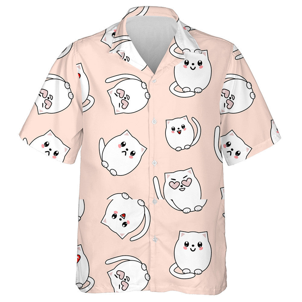 Cute Cat Different Emotion On Pink Background Hawaiian Shirt, Hawaiian Shirt Gift, Christmas Gift
