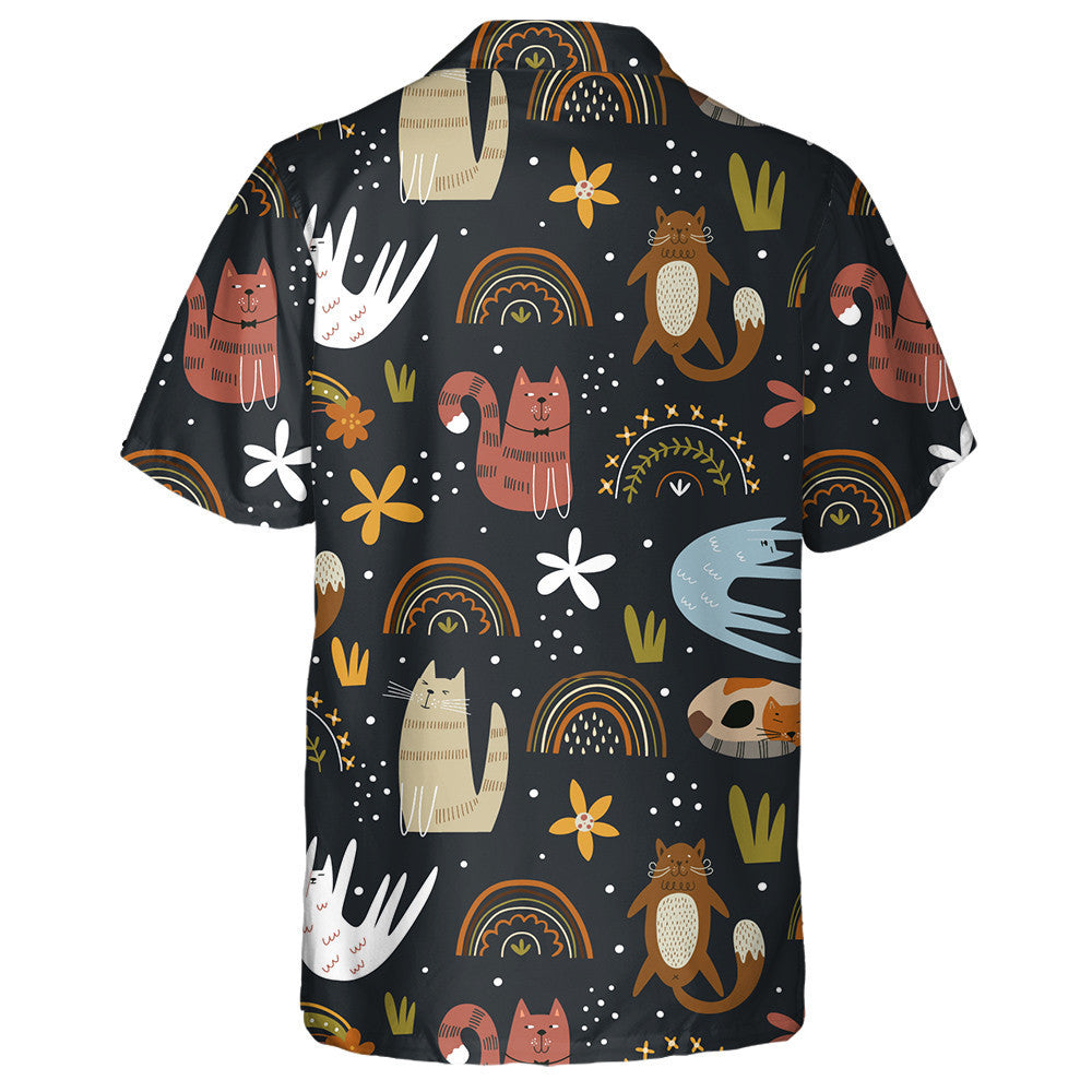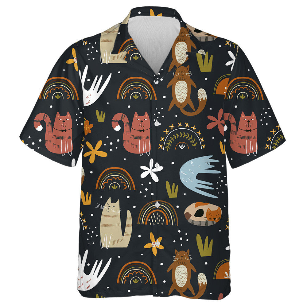 Cute Cats And Flowers Spring Background Hawaiian Shirt,Hawaiian Shirt Gift, Christmas Gift