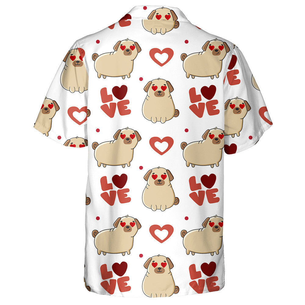 Cute Dog Breed Pug And Hearts On White Background Hawaiian Shirt, Hawaiian Shirt Gift, Christmas Gift