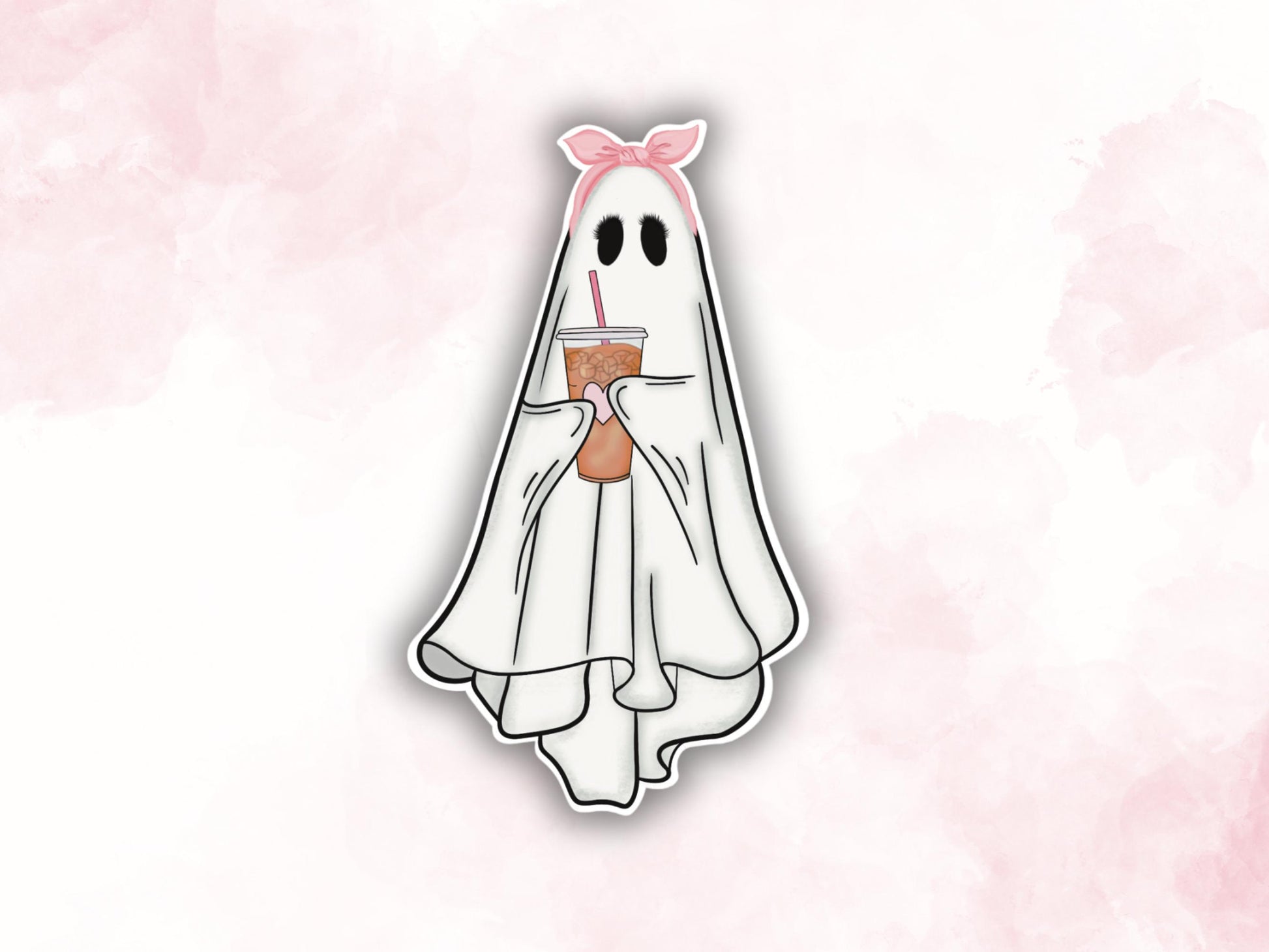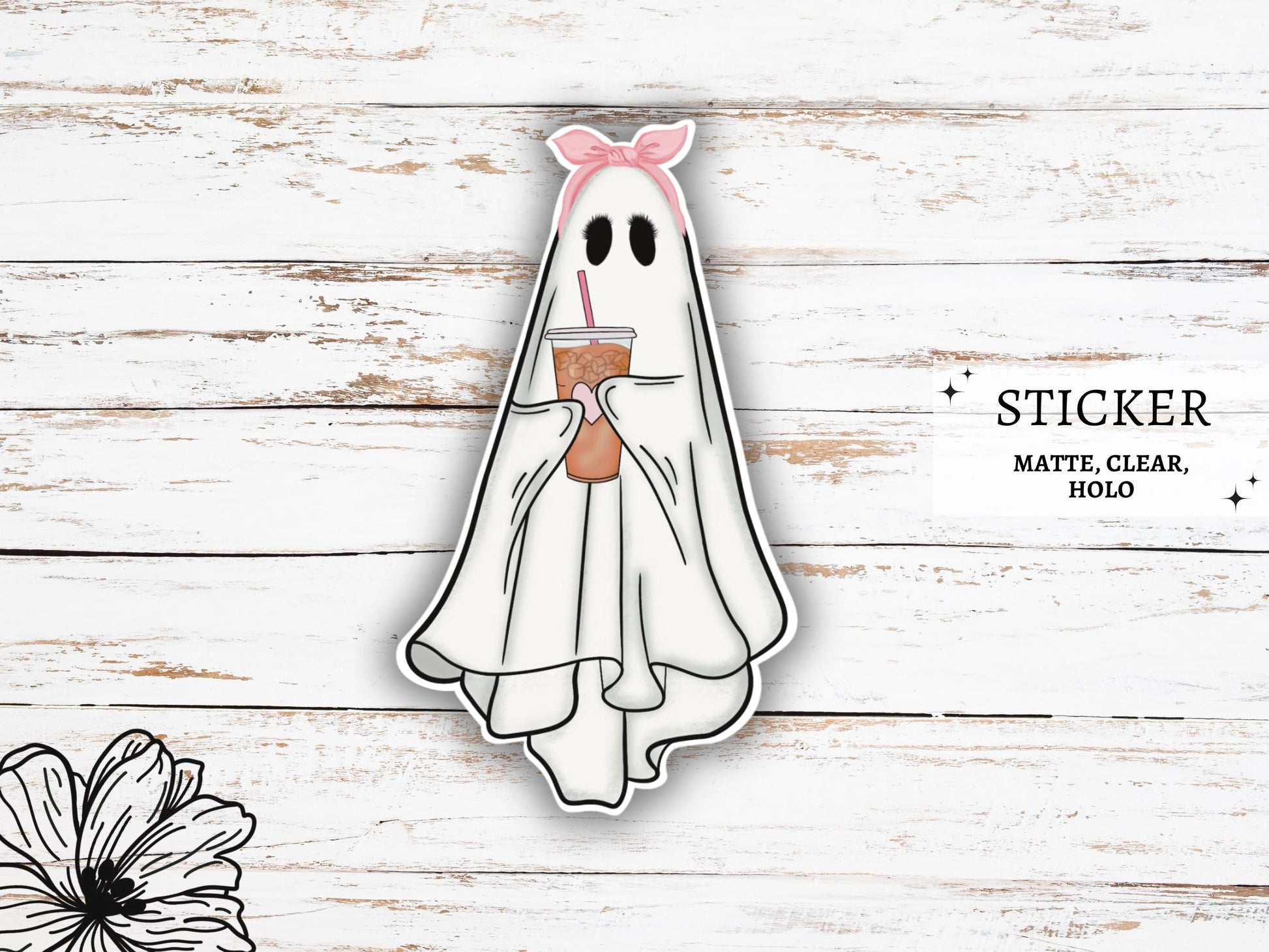Cute Ghost Iced Coffee Sticker | Ghost with Coffee | Ghost Vinyl Sticker | Ghost Decals | Girly Stickers | Halloween Stickers | Coquette