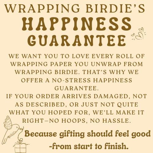 • 1 roll/sheet of custom-printed gift wrap in your selected size and finish