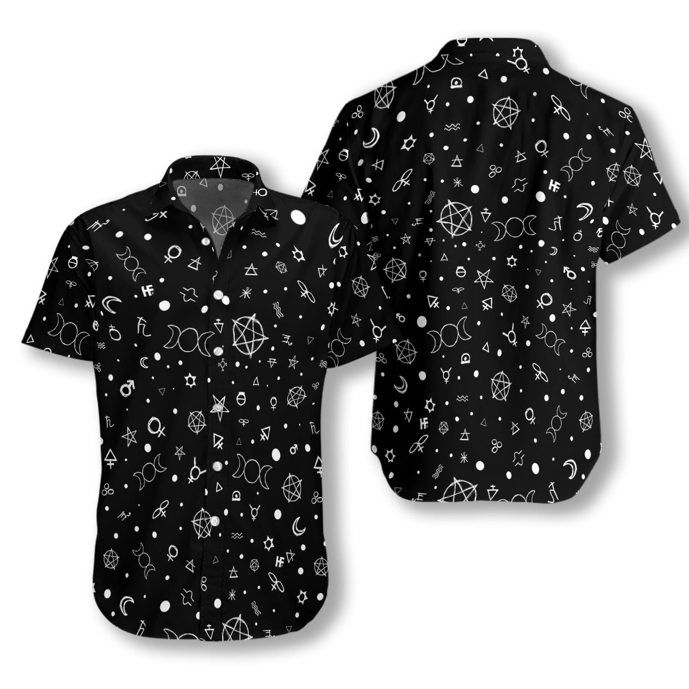 Cute Occult Symbols Wicca Black Theme Hawaiian Shirt,Hawaiian Shirt Gift, Christmas Gift