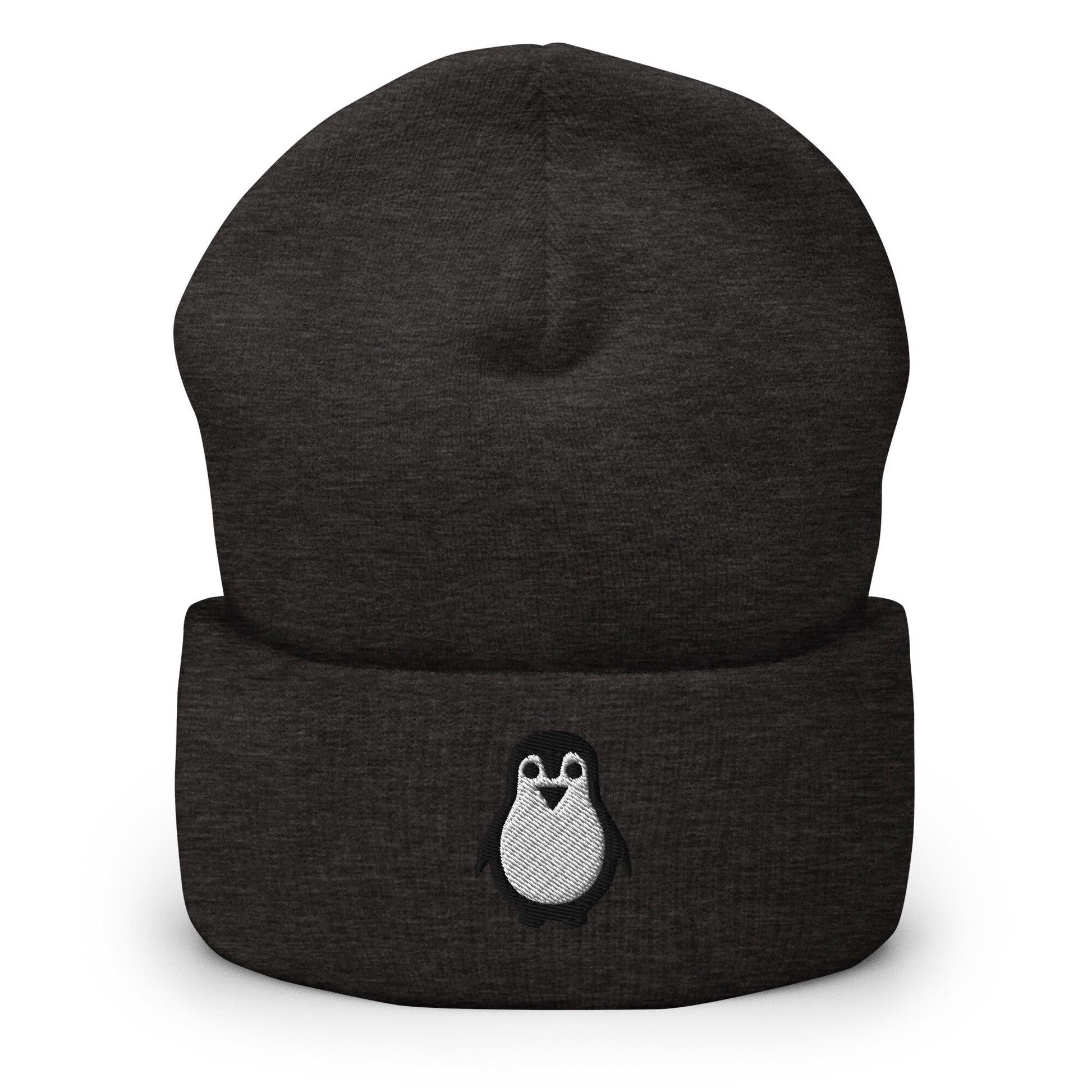 Cute Penguin Embroidered Beanie, Handmade Cuffed Knit Unisex Slouchy Adult Winter Hat Cap Gift