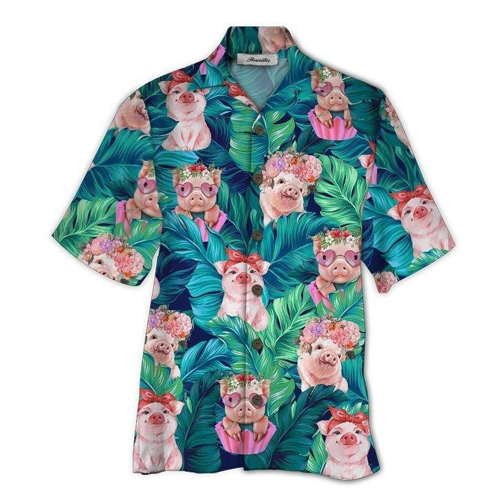 Cute Pig Tropical Background Design Hawaiian Shirt,Hawaiian Shirt Gift, Christmas Gift