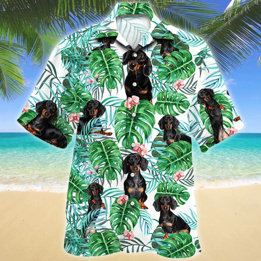 Dachshund Dog Tropical Plant White Theme Hawaiian Shirt, Hawaiian Shirt Gift, Christmas Gift