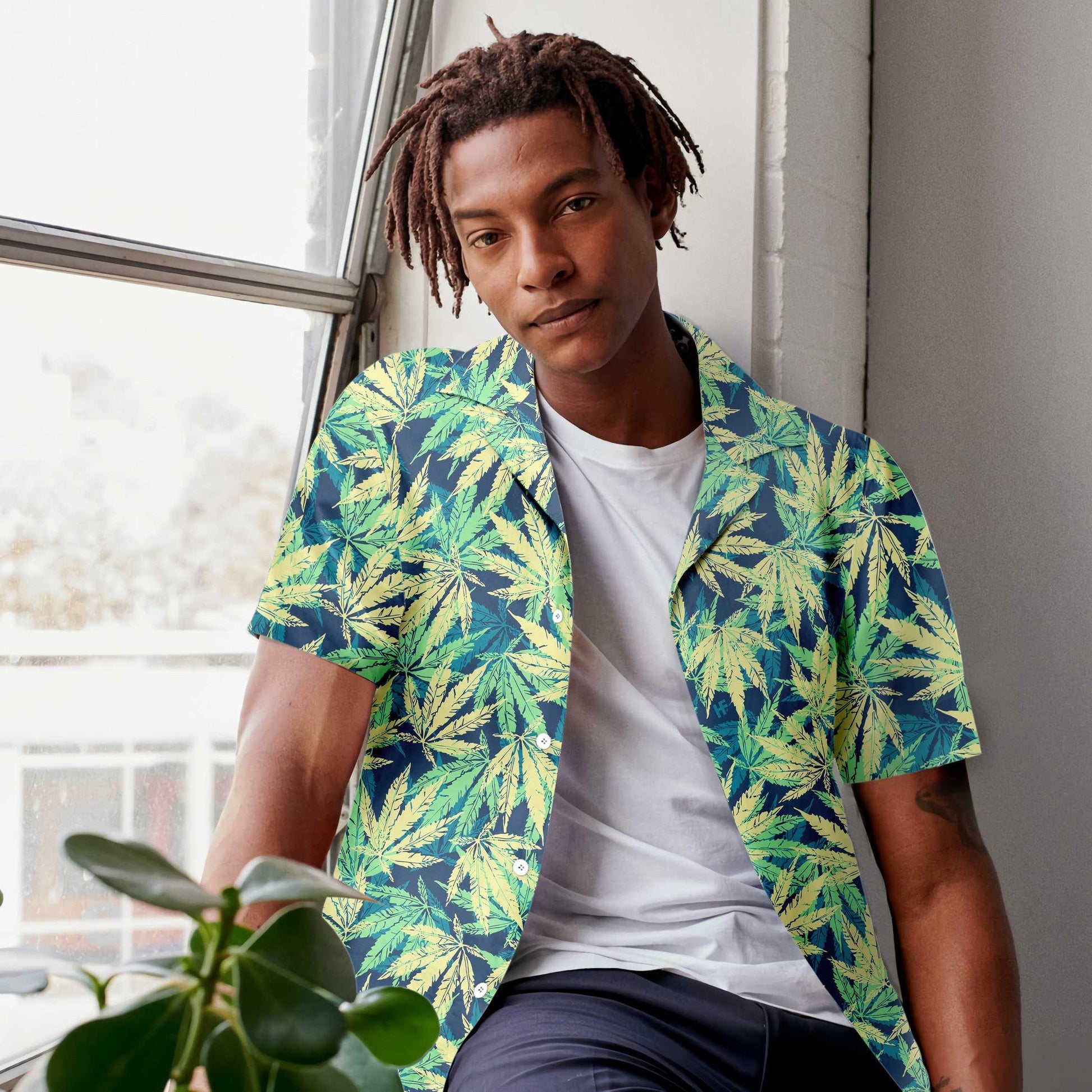 Dark Blue Tropical Marijuana Leaves Design Hawaiian Shirt,Hawaiian Shirt Gift, Christmas Gift