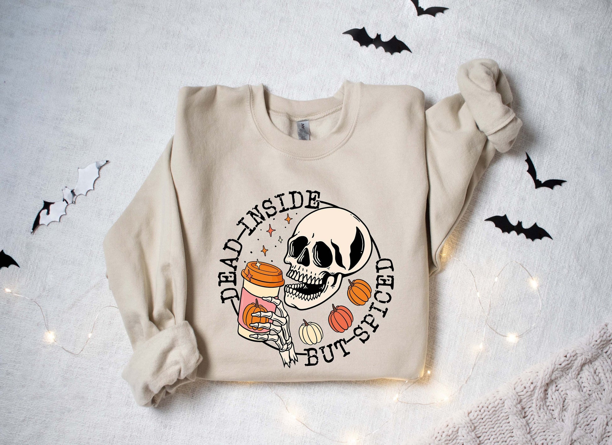 Dead Inside But Spiced Shirt,Fall shirt,Dead inside halloween shirt,Womens skeleton halloween shirt,Funny halloween shirt, Pumpkin Shirt