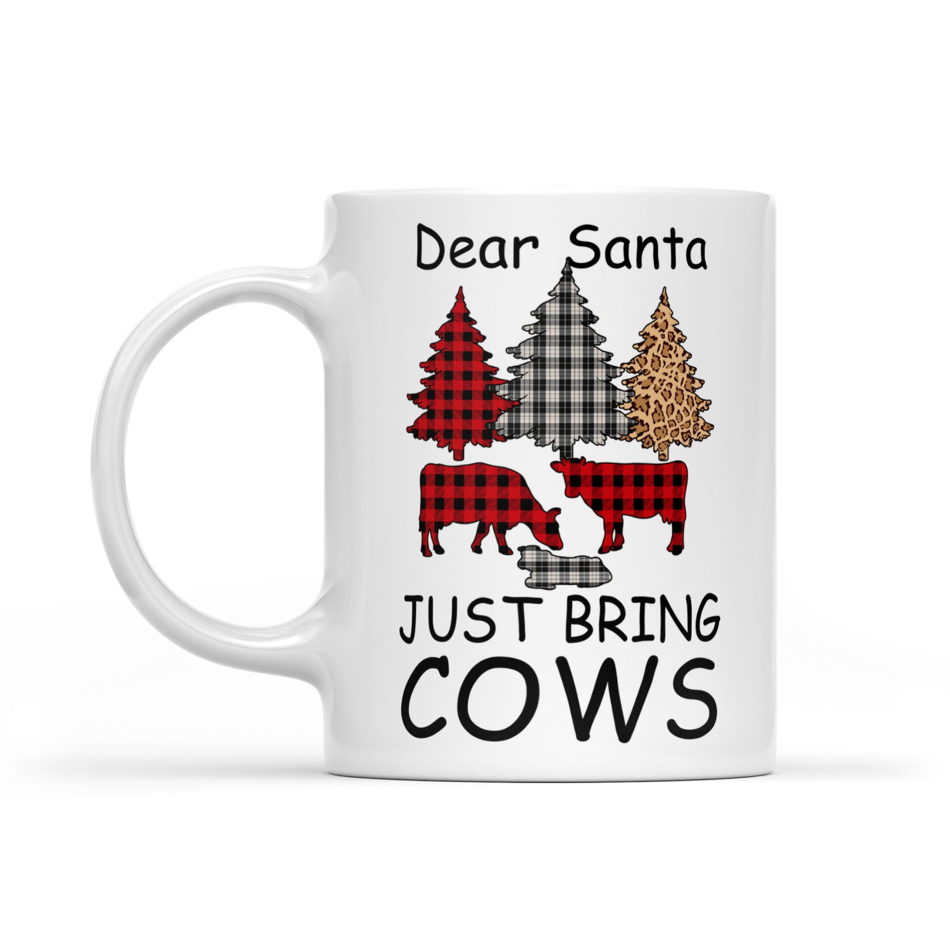 Dear Santa Just Bring Cows Funny Christmas Buffalo Plaid White Mug Gift For Christmas