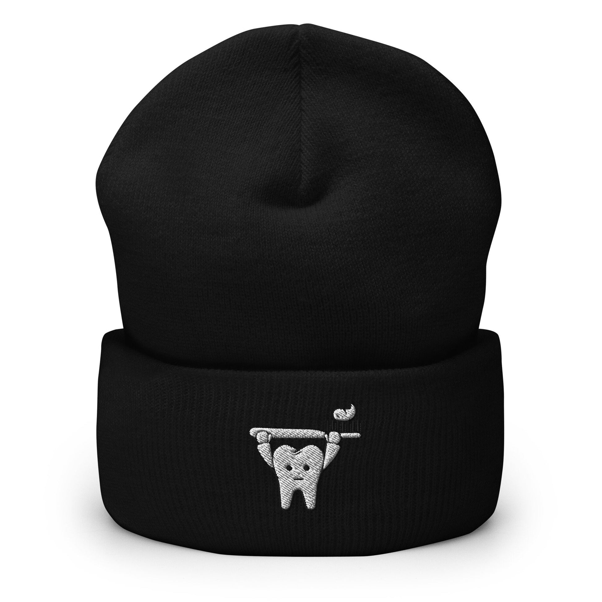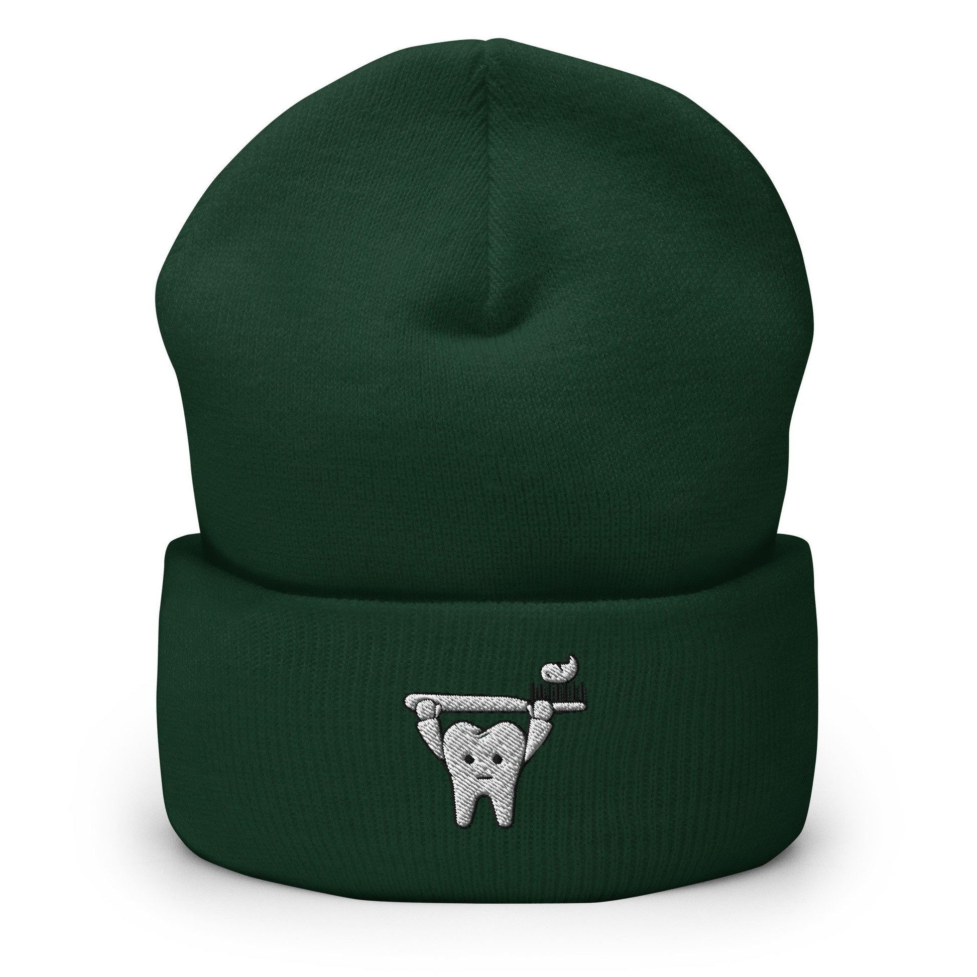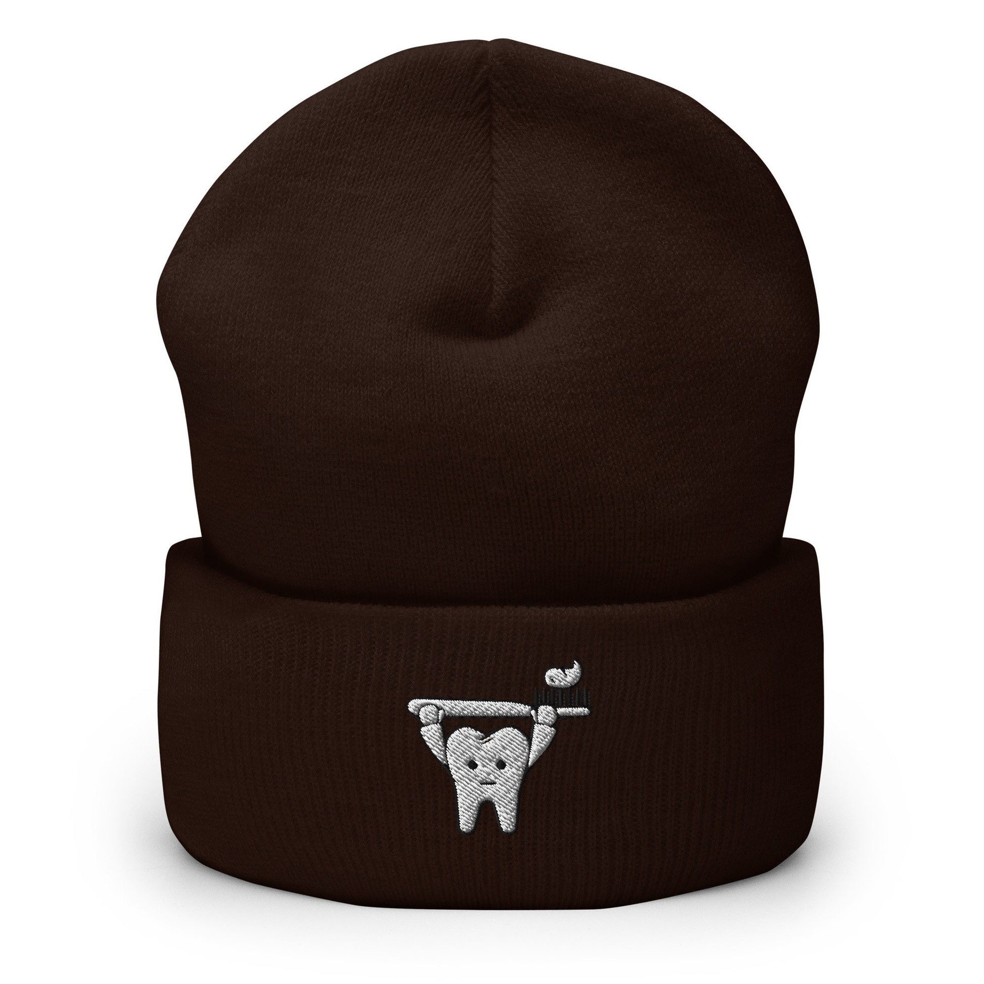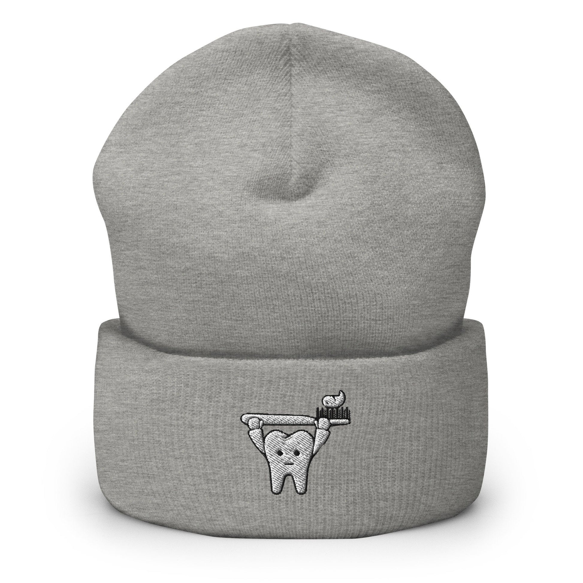 Dentist Tooth Dental Hygiene Embroidered Beanie, Handmade Cuffed Knit Unisex Slouchy Adult Winter Hat Cap Gift