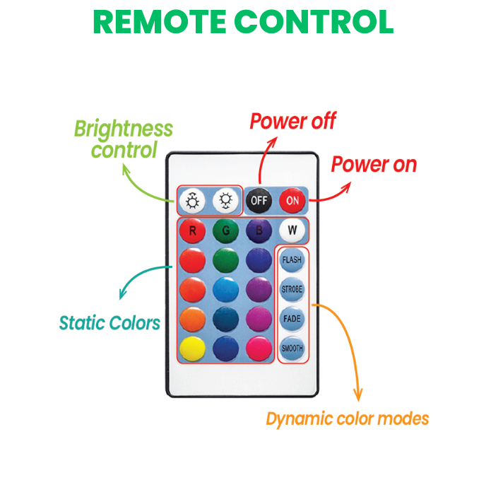 • Remote control for easy adjustment: Adjust the brightness, change the color or lighting modes, and turn on or turn off the lights with the remote control.