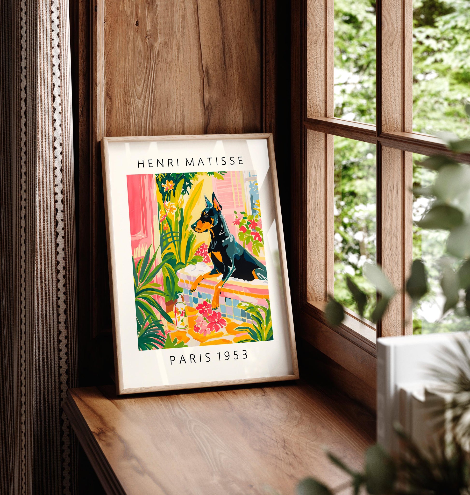 Doberman in Bathtub Art Print: Funny Dog Bathroom Poster