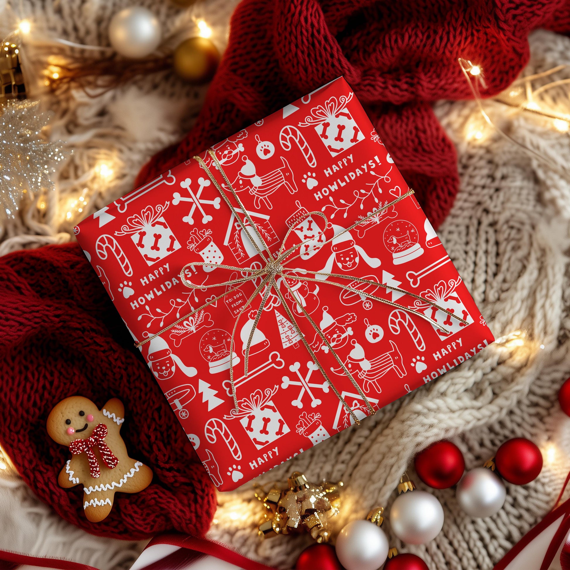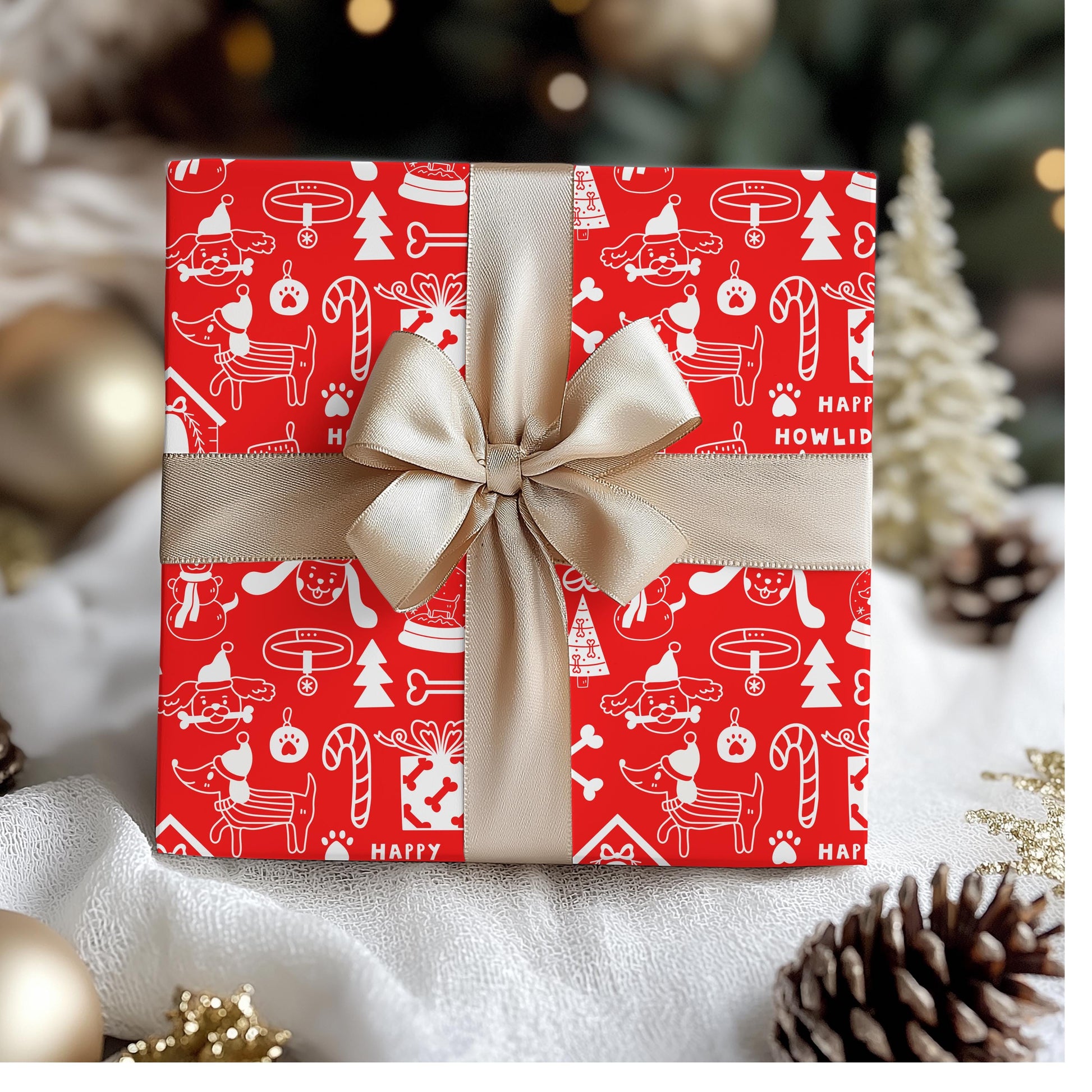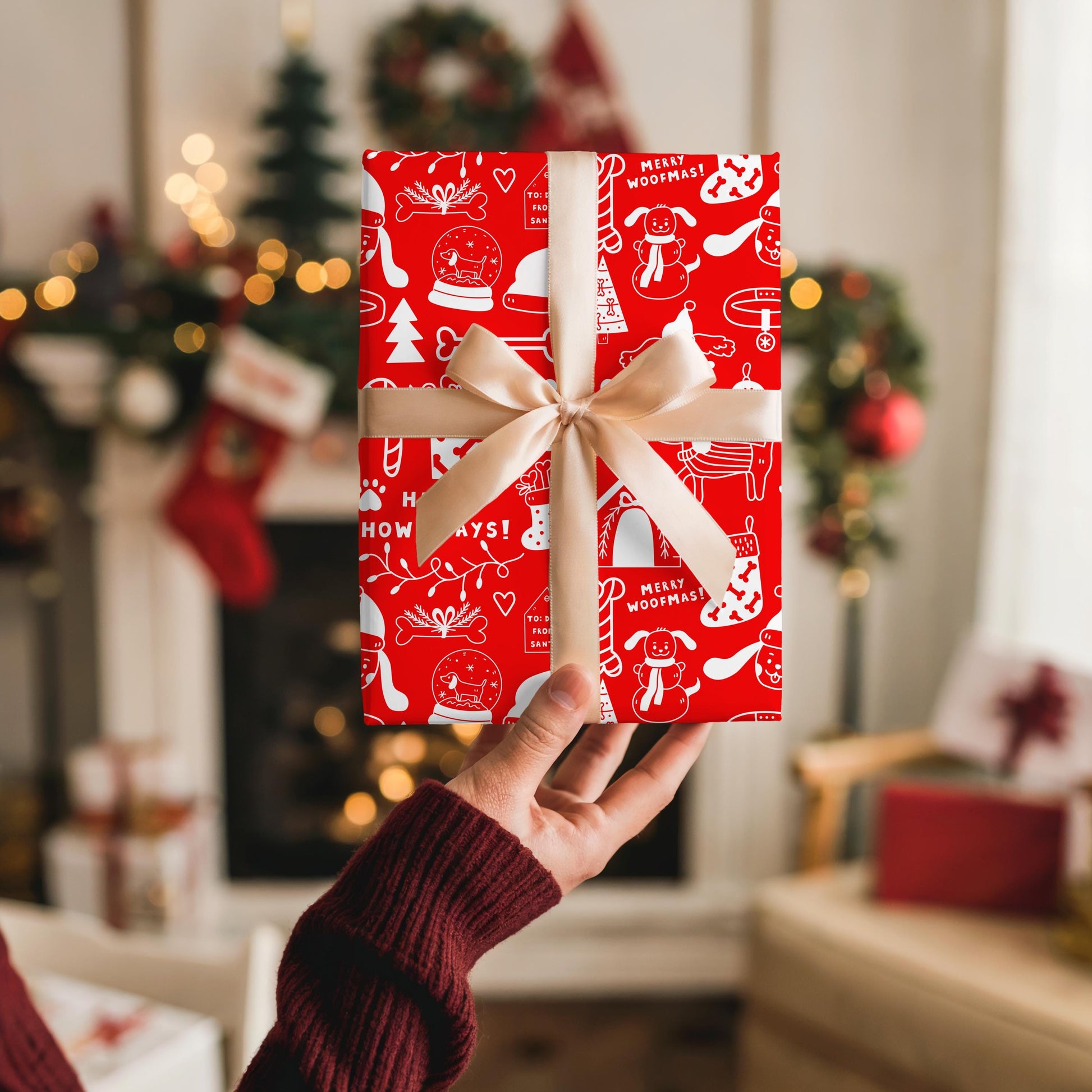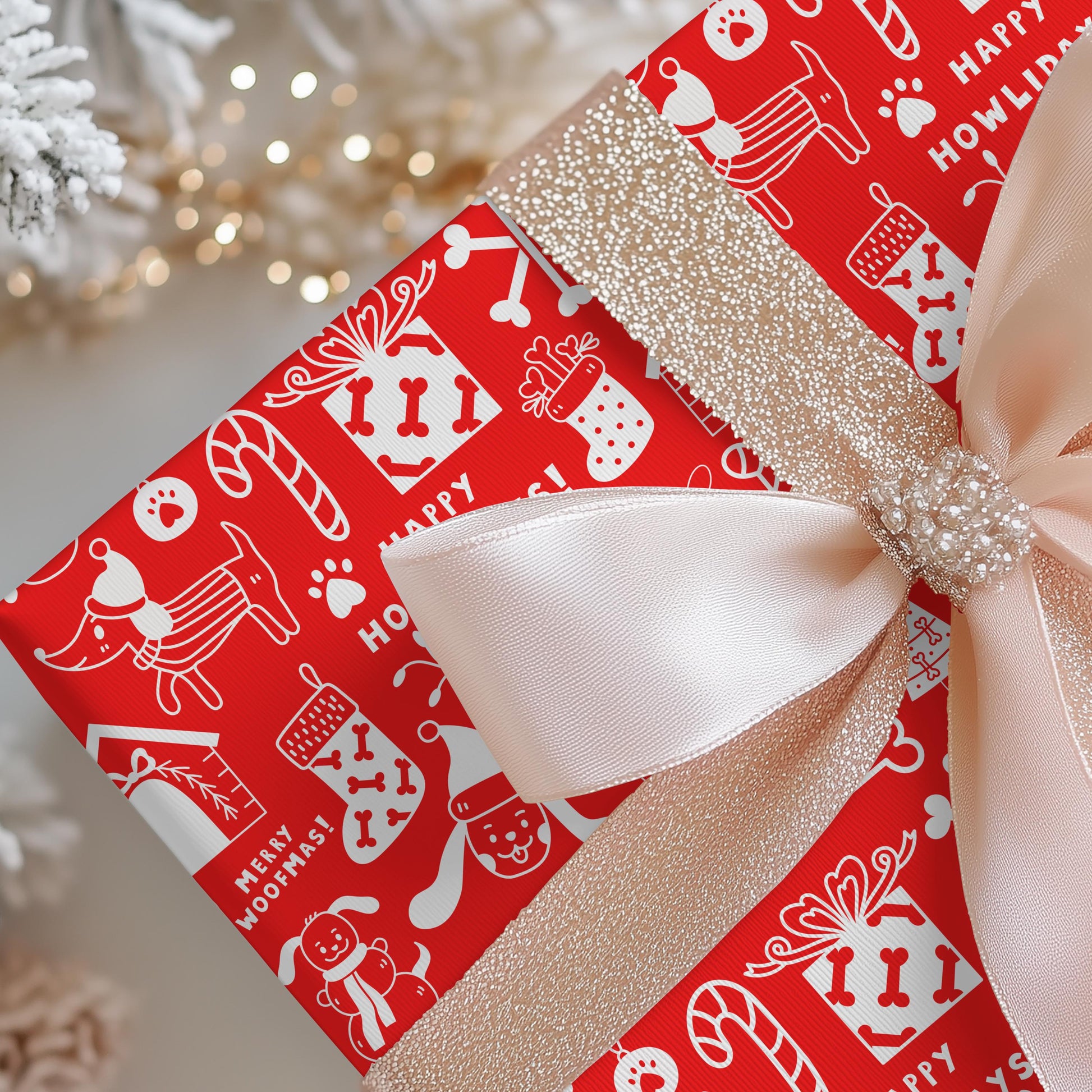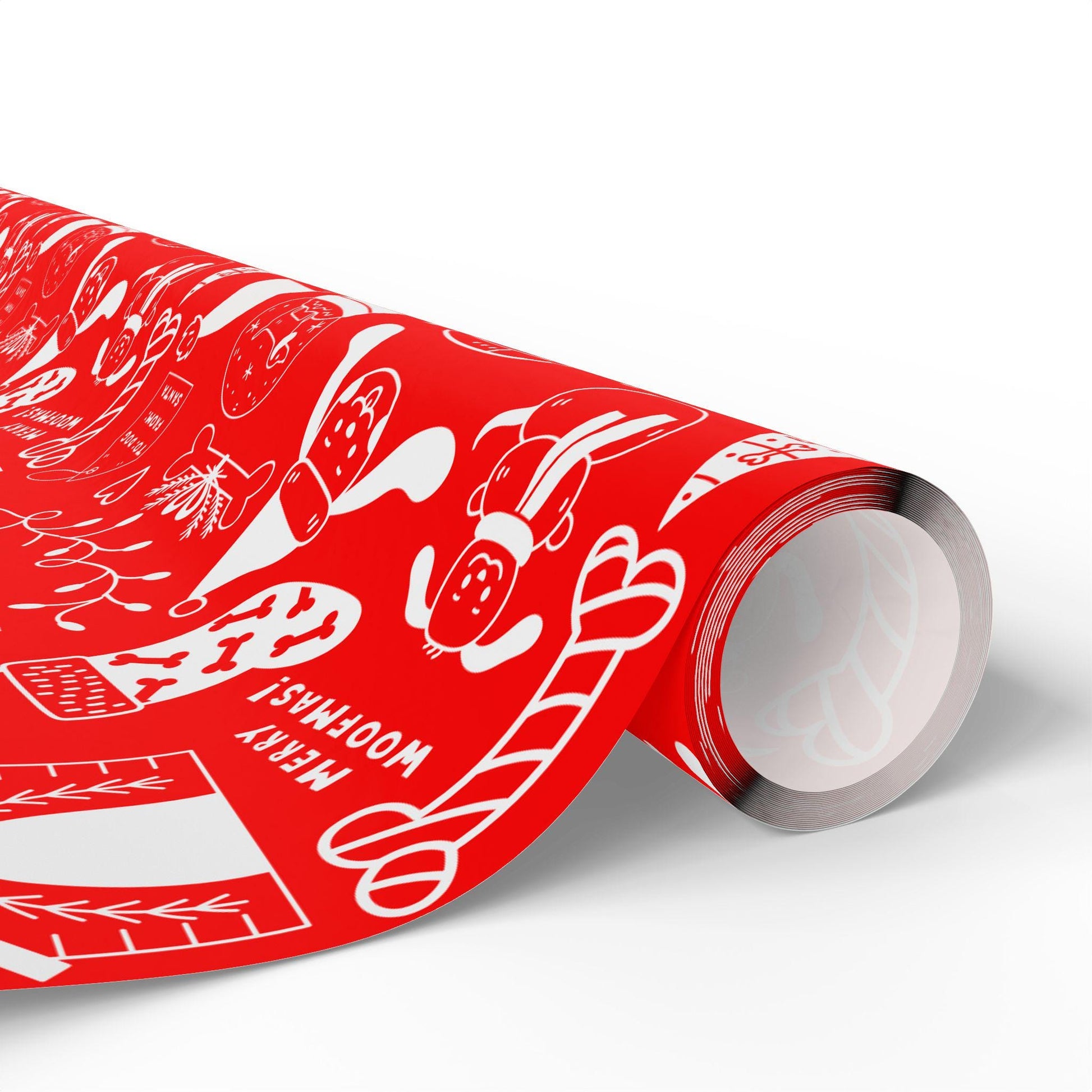 Dog Gift Wrap Paper, Hand Drawn Doodle Drawings in Red and White, DOGGY Wrapping Papers, Puppy Gift Wrap