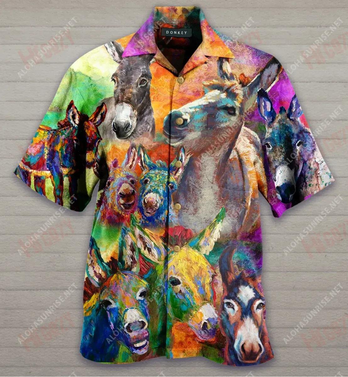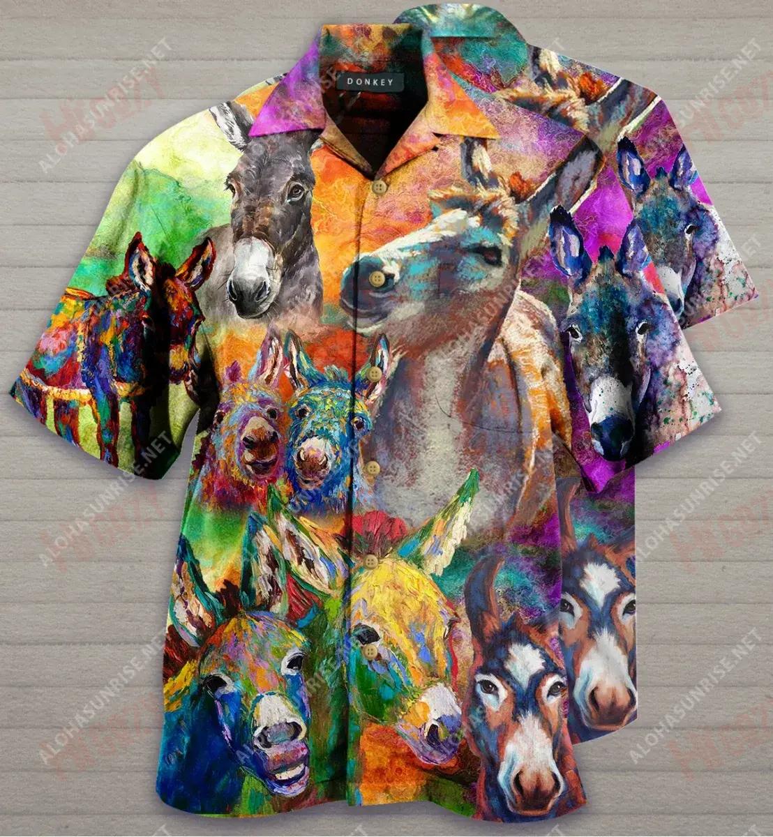 Donkeys Make Me Smile Short Hawaiian Shirt Summer Short Sleeve Vintage Hawaiian Shirts Funny Hawaiian Shirts, Hawaiian Shirt Gift, Christmas Gift