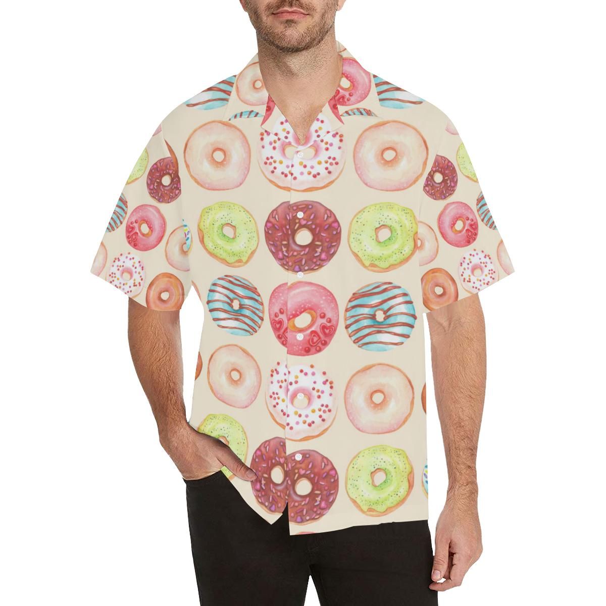 Donut Pattern Men'S All Over Print Hawaiian Aloha Shirt Hawaiian Shorts Beach Short Sleeve_Hawaiian Shirt Gift, Christmas Gift