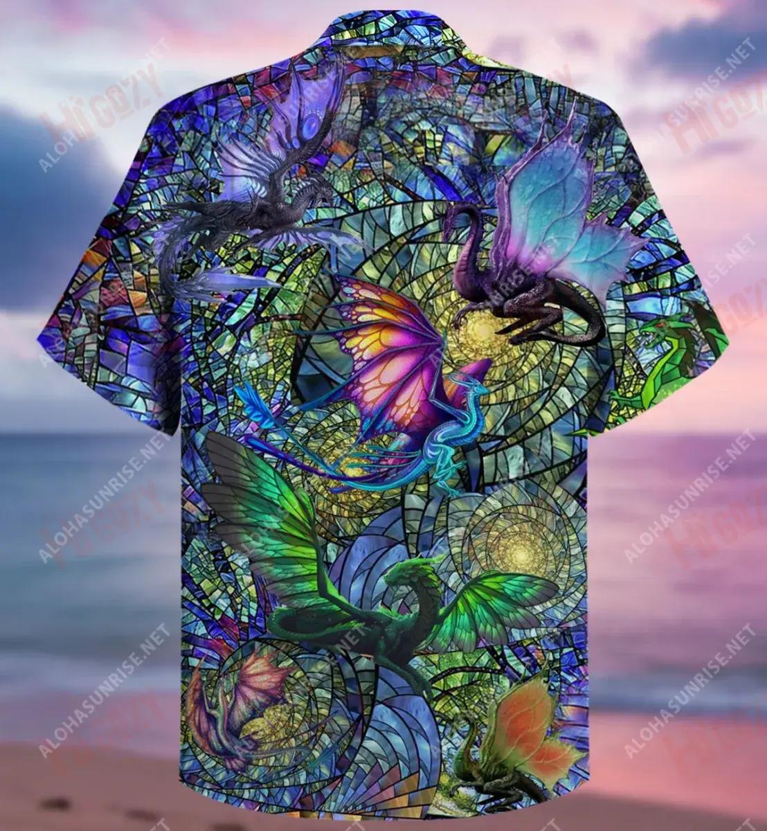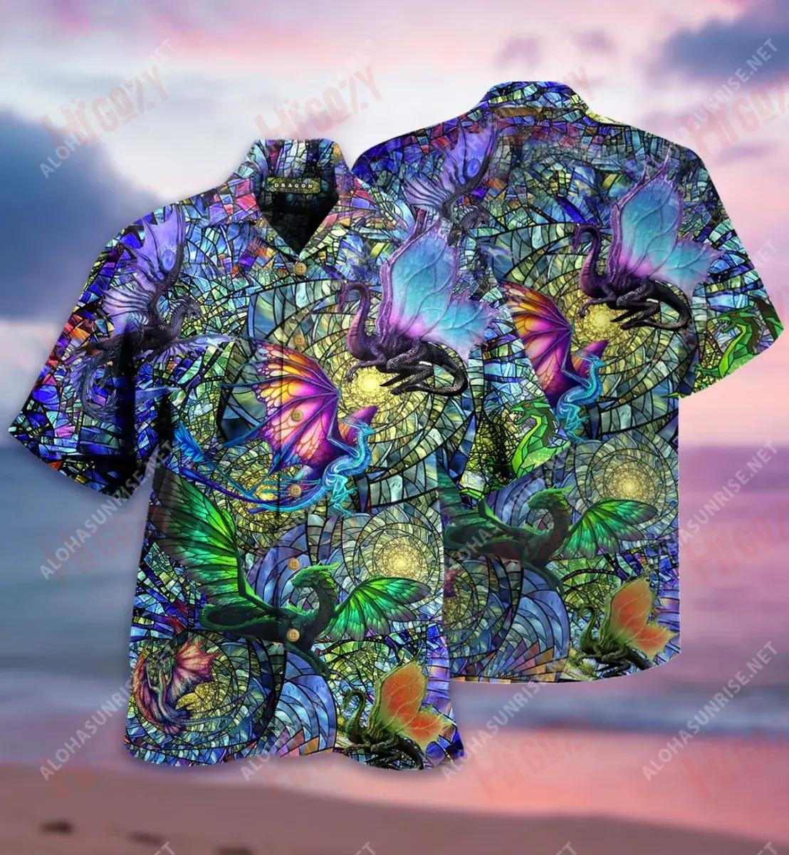 Dragon Kaleidoscope Unisex Short Hawaiian Shirt Ocean Aloha Shirt Tactical Hawaiian Shirt Hawaiian Shirts For Women, Hawaiian Shirt Gift, Christmas Gift