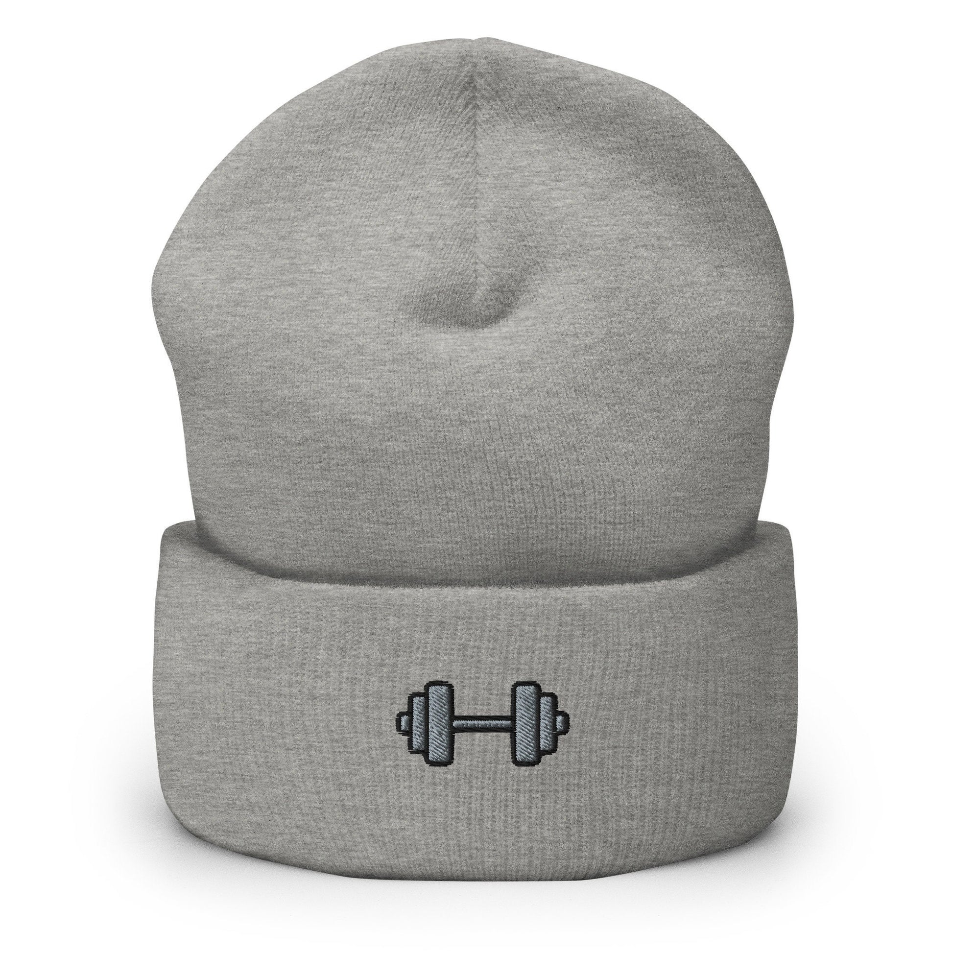 Dumbbell Weightlifting Body Building Embroidered Beanie, Handmade Cuffed Knit Unisex Slouchy Adult Winter Hat Cap Gift