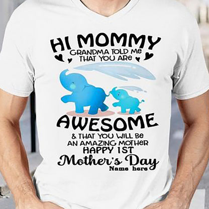 Elephant Hi Mommy Grandma Told Me That You Are Awesome And That You Will Be Tee T shirt Mother's Day