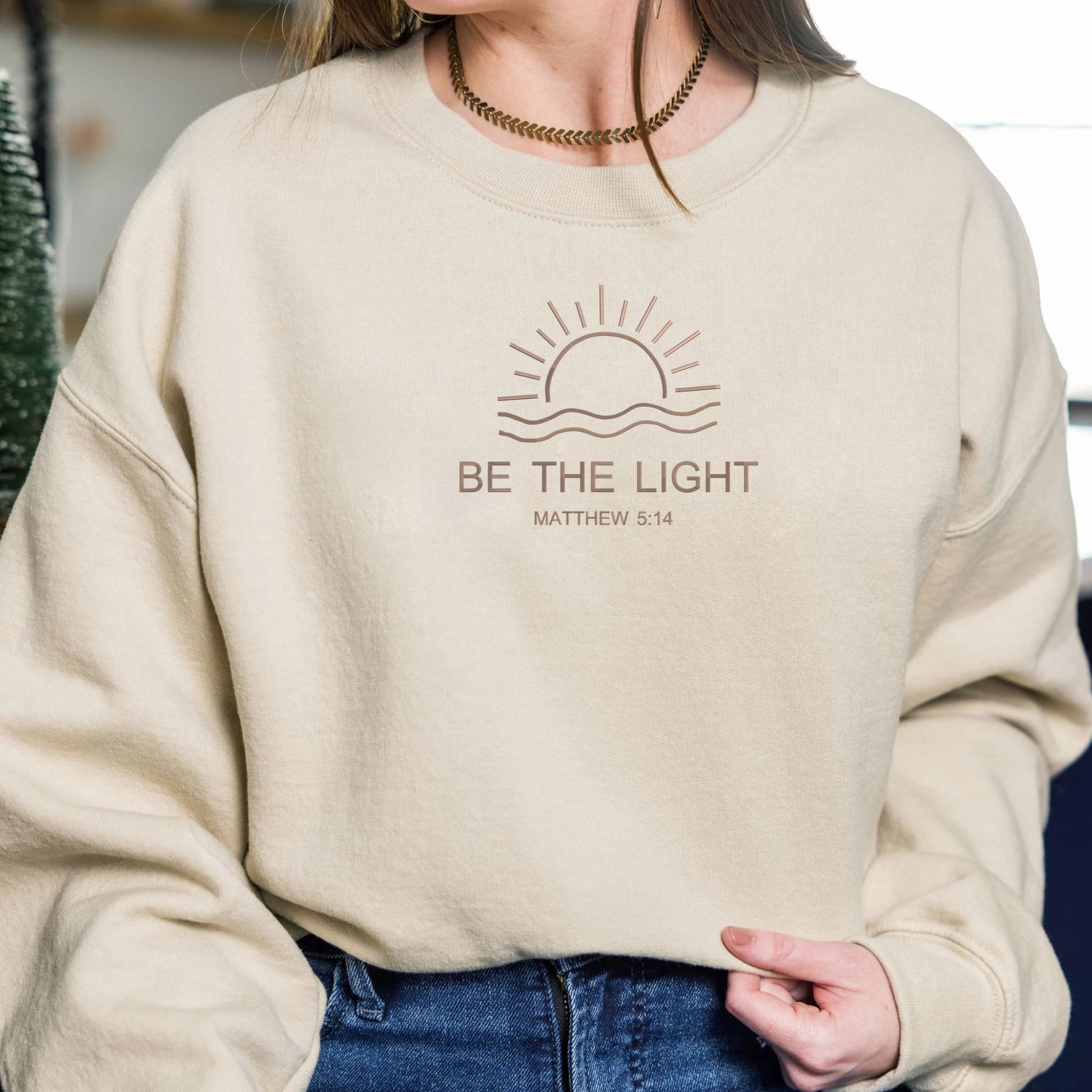 Embroidered Be The Light Sweatshirt or Hoodie