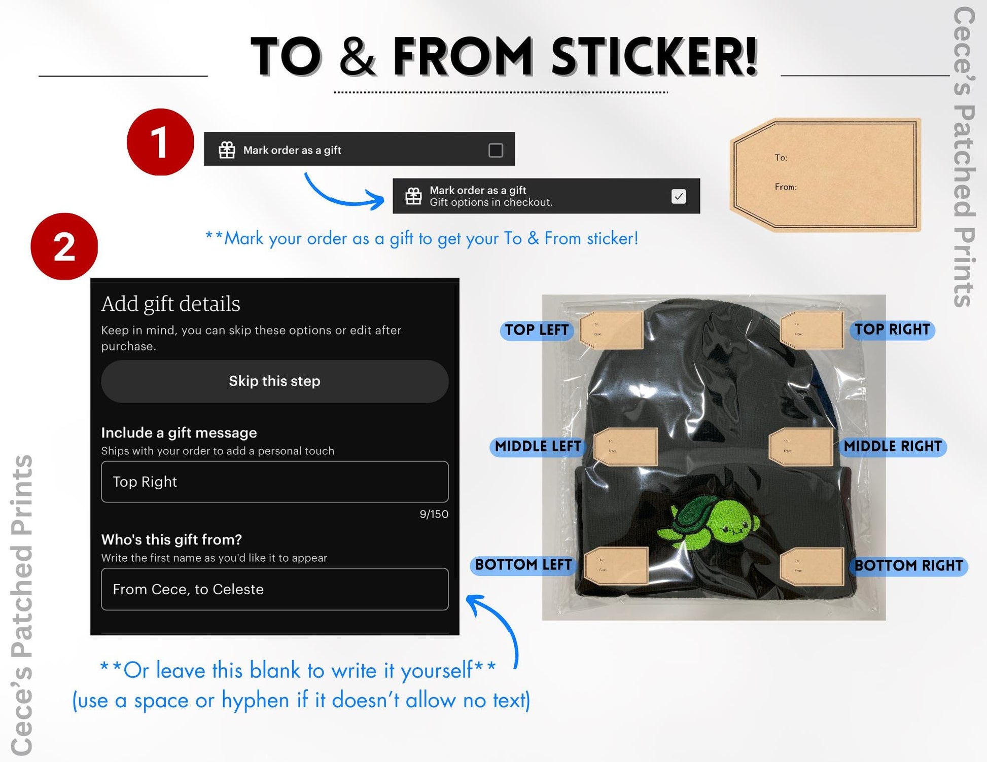 - Embroidery position: Front and back