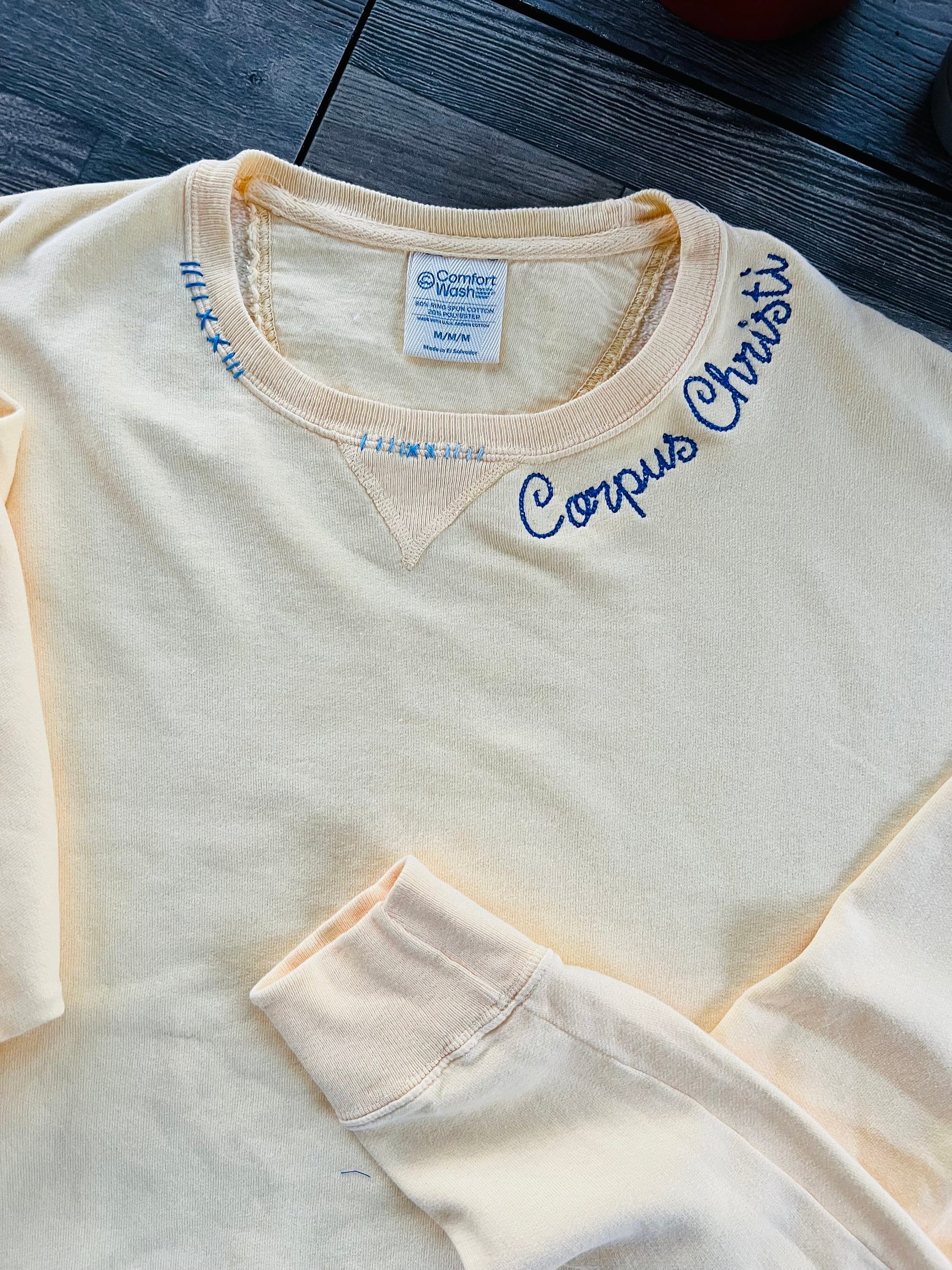 Embroidered Neck Sweatshirt, Vintage Inspired Sweatshirt, Hand Embroidered, Custom Embroidered Sweatshirt, Embroidered Crewneck