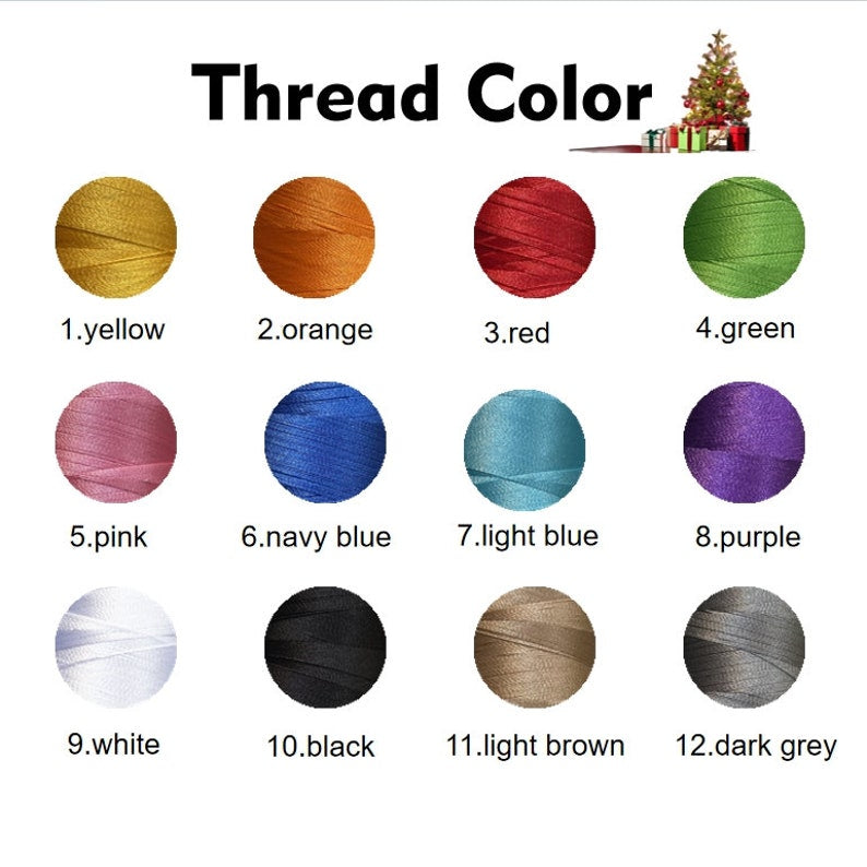2.Write down the name,font, thread color and embroidery position in the personalized box.