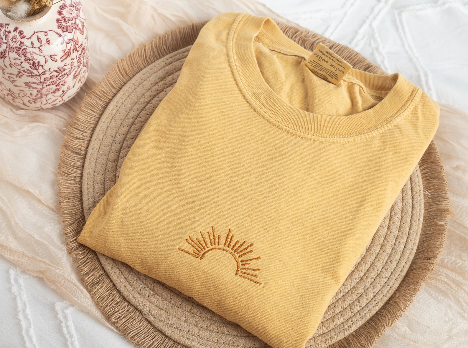 Embroidered Sun Tshirt, Embroidered Sunshine tshirt, Embroidered Summer Tshirt, Embroidered Boho Shirt, Trendy Tshirts for Men Women