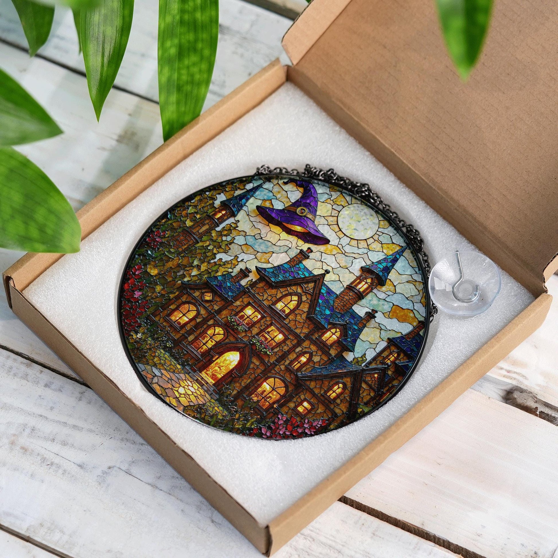 Enchanted haunted house suncatcher Halloween window hanging gift for witch lovers or spooky home decor
