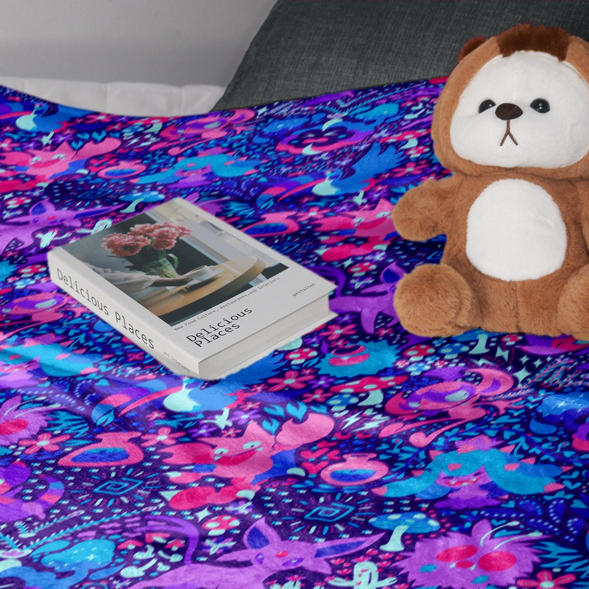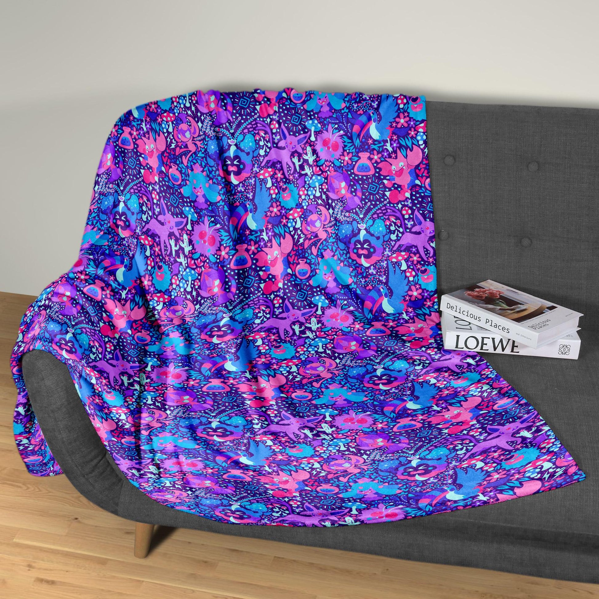 Espeon and Cosmog Fleece Blanket, Cozy Throw for Bedroom Living Room, Soft Cotton Bedding, Home Decor Throw Blanket, Espeon Blanket Gifts