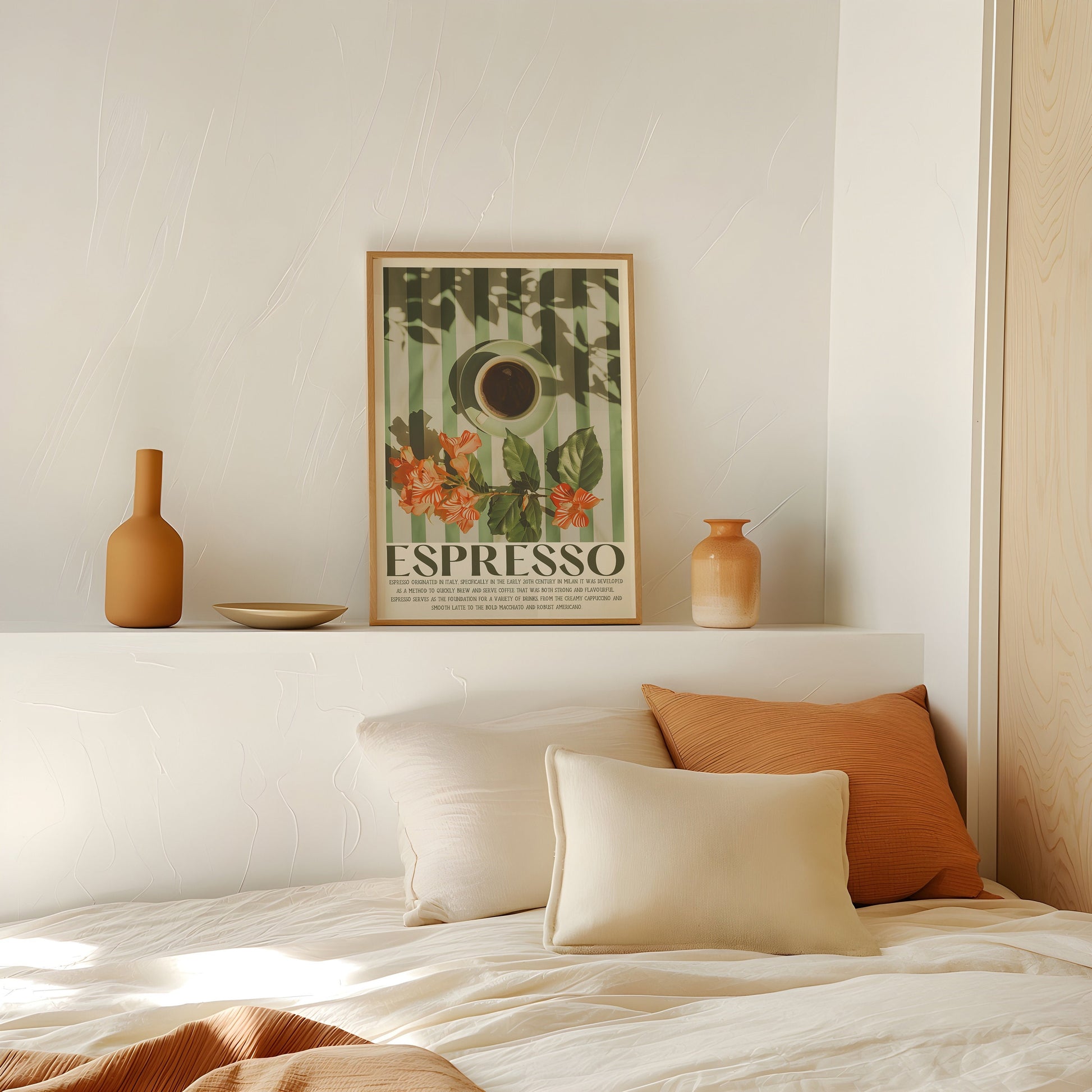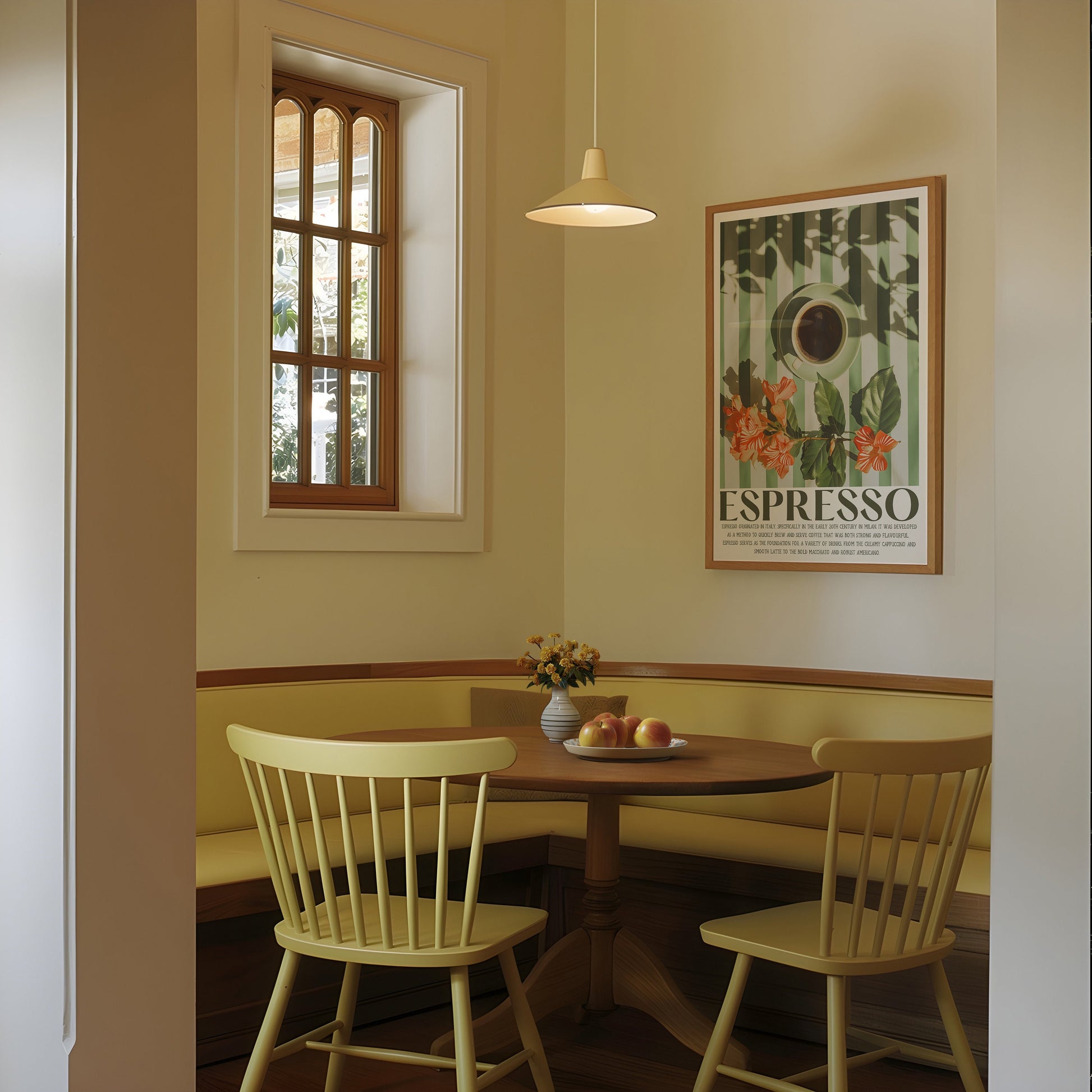Espresso Coffee Print, Retro Vintage Kitchen Poster, Italian Coffee Art, Aesthetic Coffee Poster, Coffee Cup On Table, Cafe Art, 70s 80s 90s