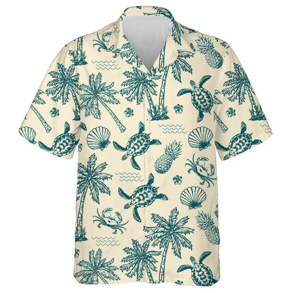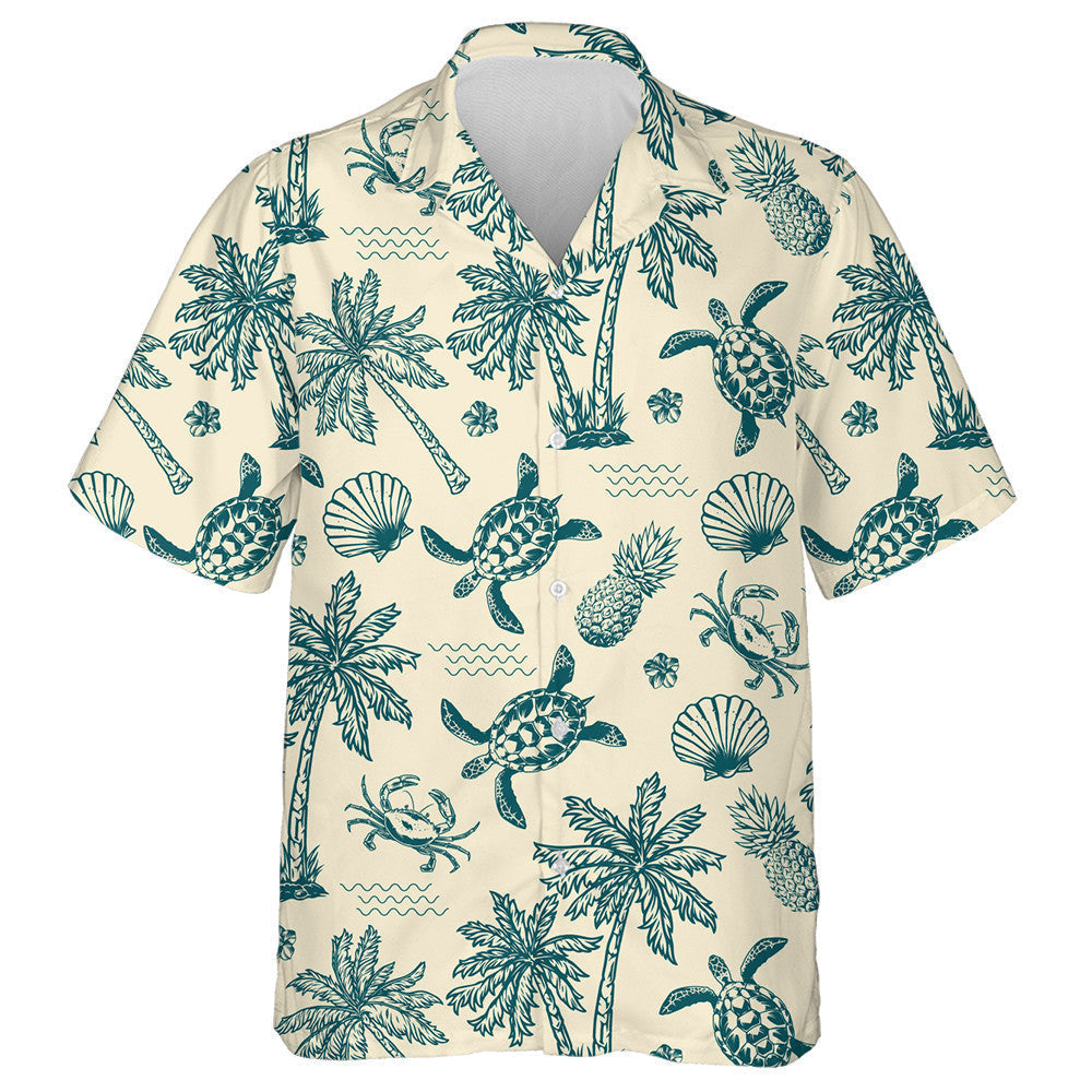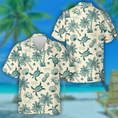 Exotic Flowers Palm Trees Sea Waves And Turtles Hawaiian Shirt, Hawaiian Shirt Gift, Christmas Gift