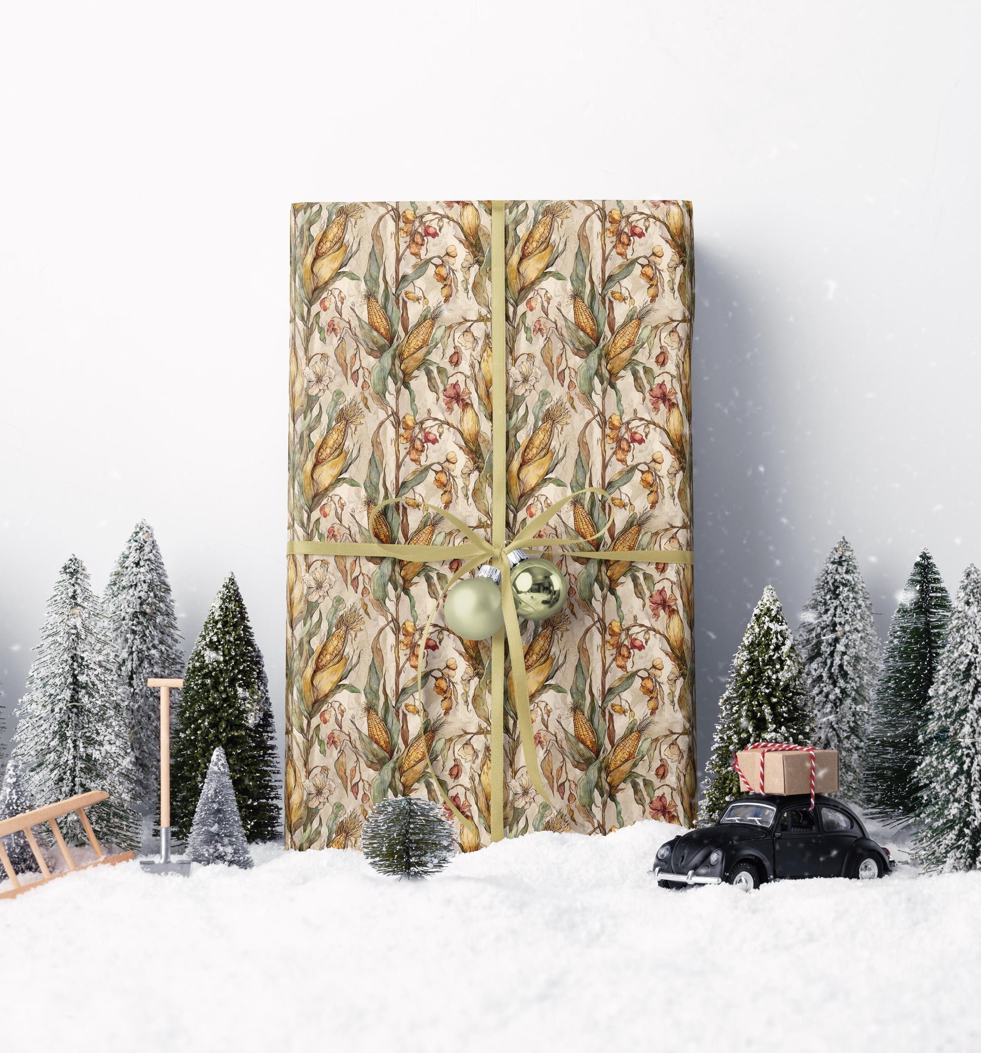 Farmers Market Wrapping Paper Roll Eco Rustic Corn Design Farm Fresh Vegetable Farmhouse Country Kitchen Gift Wrap #71
