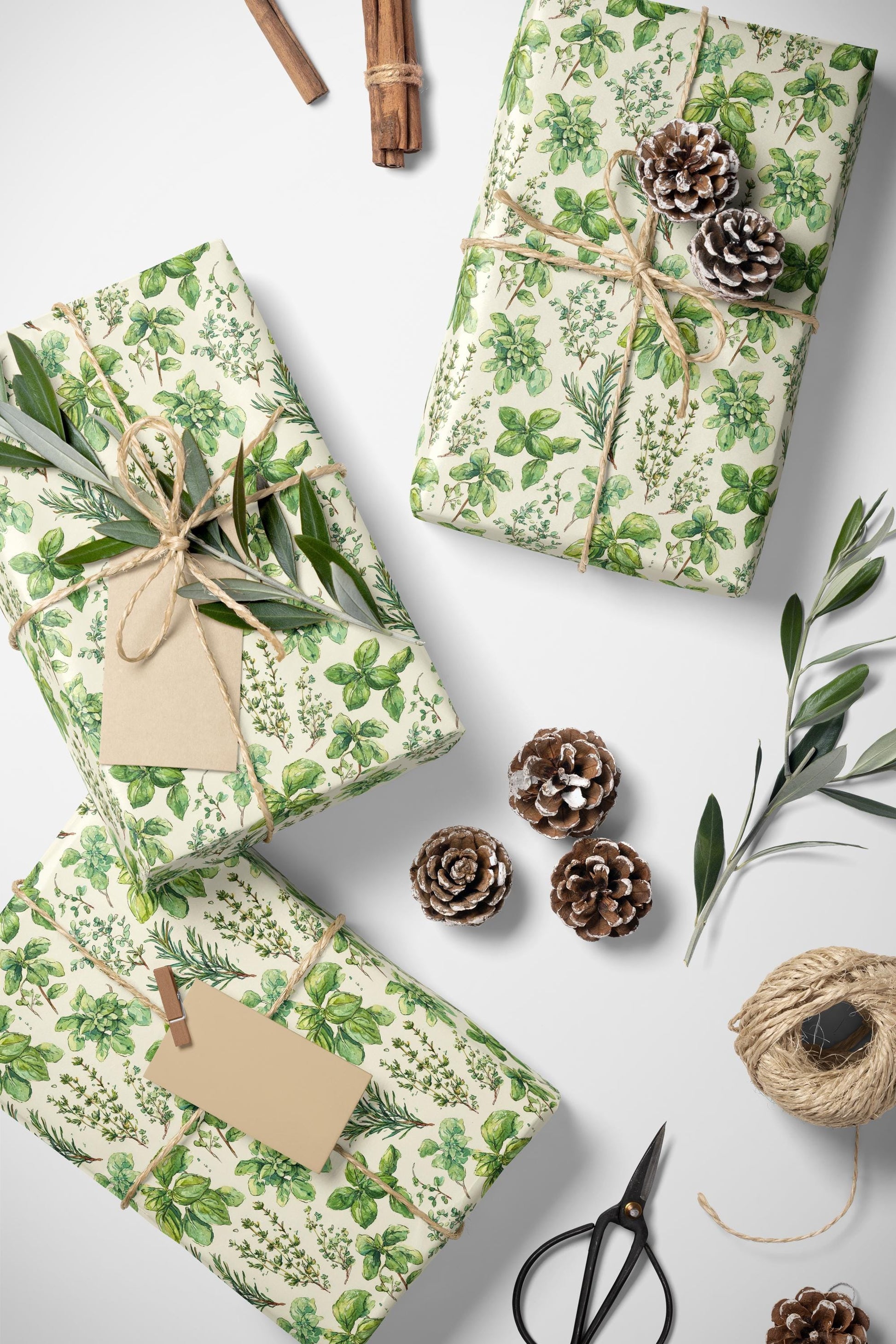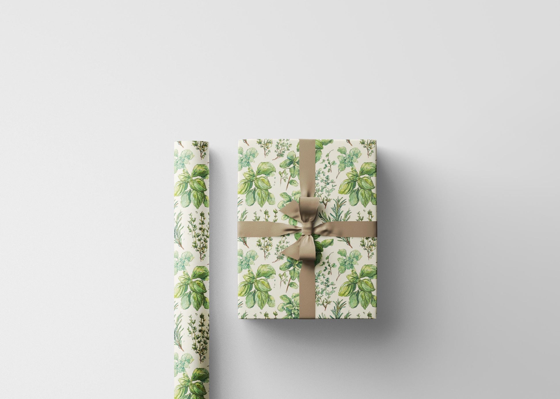 Farmers Market Wrapping Paper Roll Rustic Country Herbs Illustration Basil Rosemary Parsley Eco Farmhouse Kitchen Gift Wrap #55