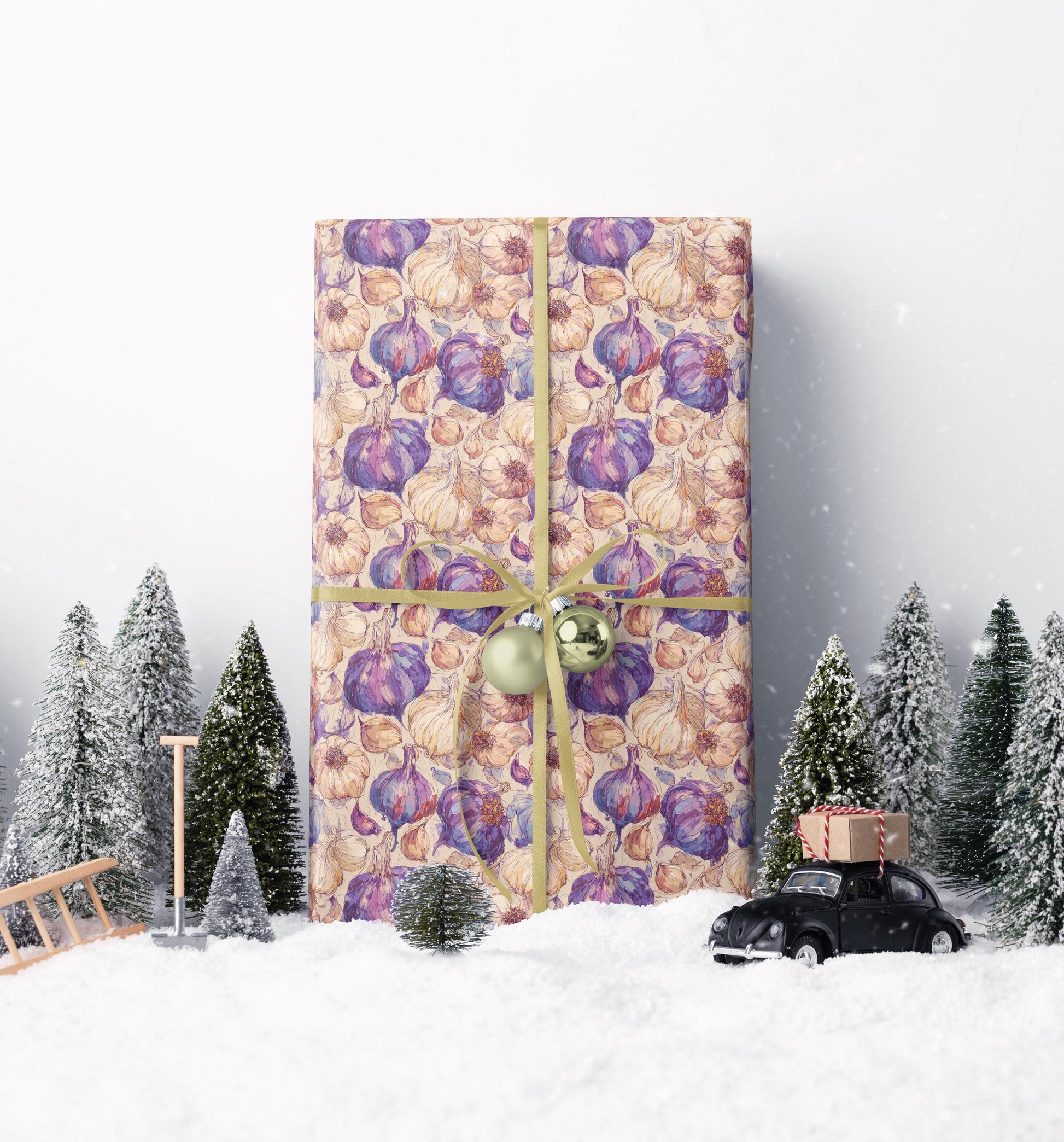Farmers Market Wrapping Paper Roll Rustic Farm Fresh Garlic Illustration Eco Friendly Farmhouse Kitchen Country Gift Wrap #44