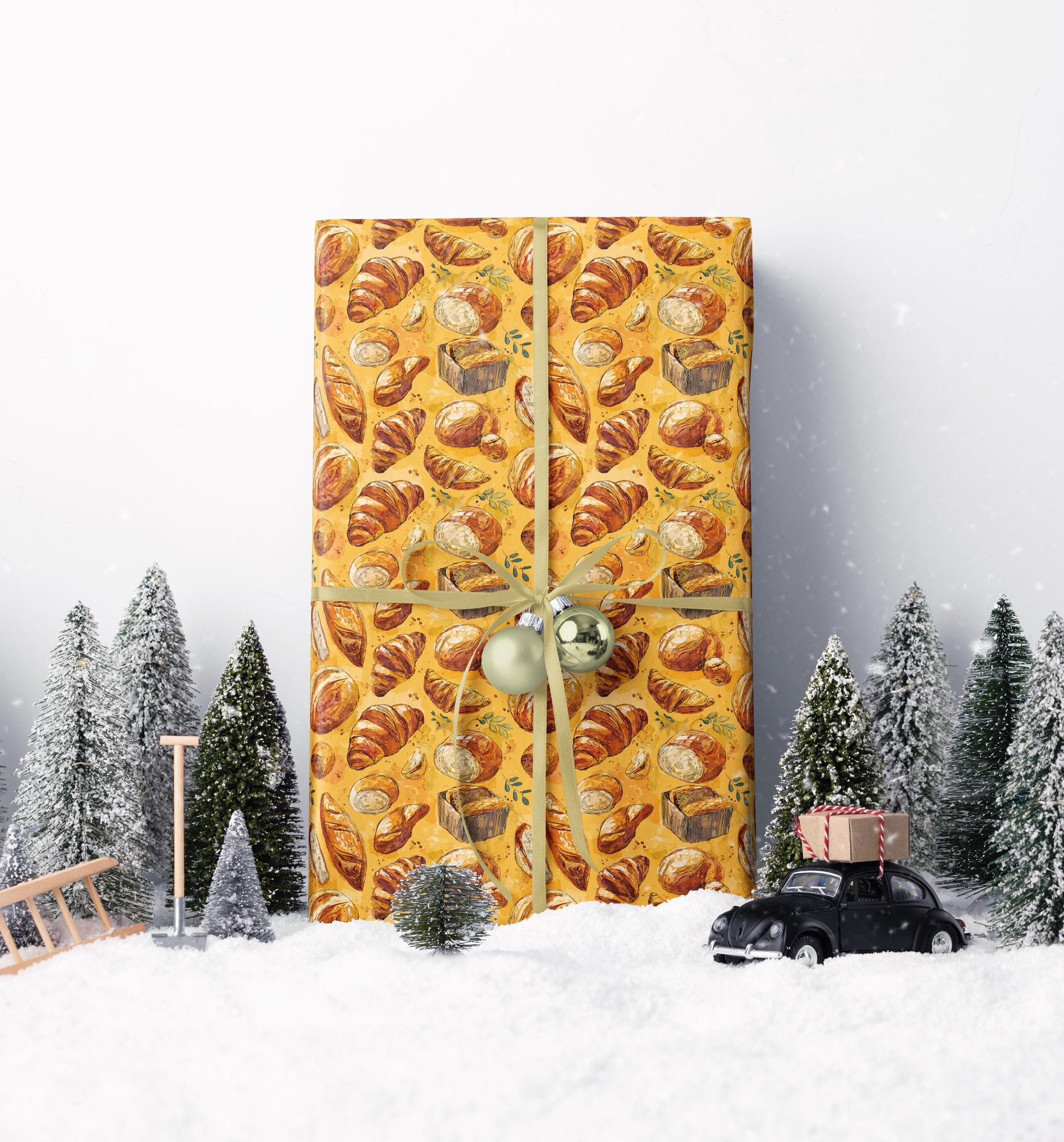 Farmers Market Wrapping Paper Roll Rustic Farmhouse Baguettes and Croissants Pastry Design Eco Country Kitchen Gift Wrap #84