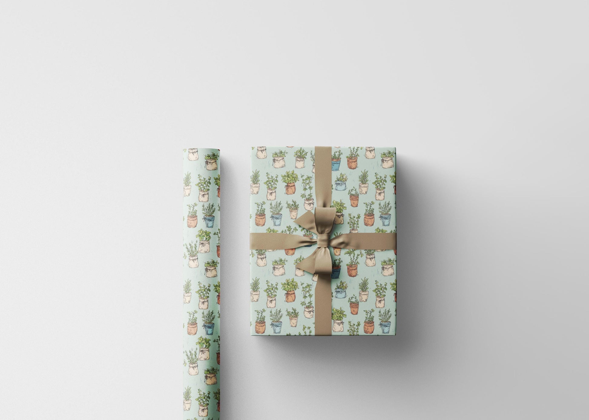 Farmers Market Wrapping Paper Roll Rustic Farmhouse Herbs Illustration Basil Parsley Thyme Eco Friendly Kitchen Gift Wrap #39