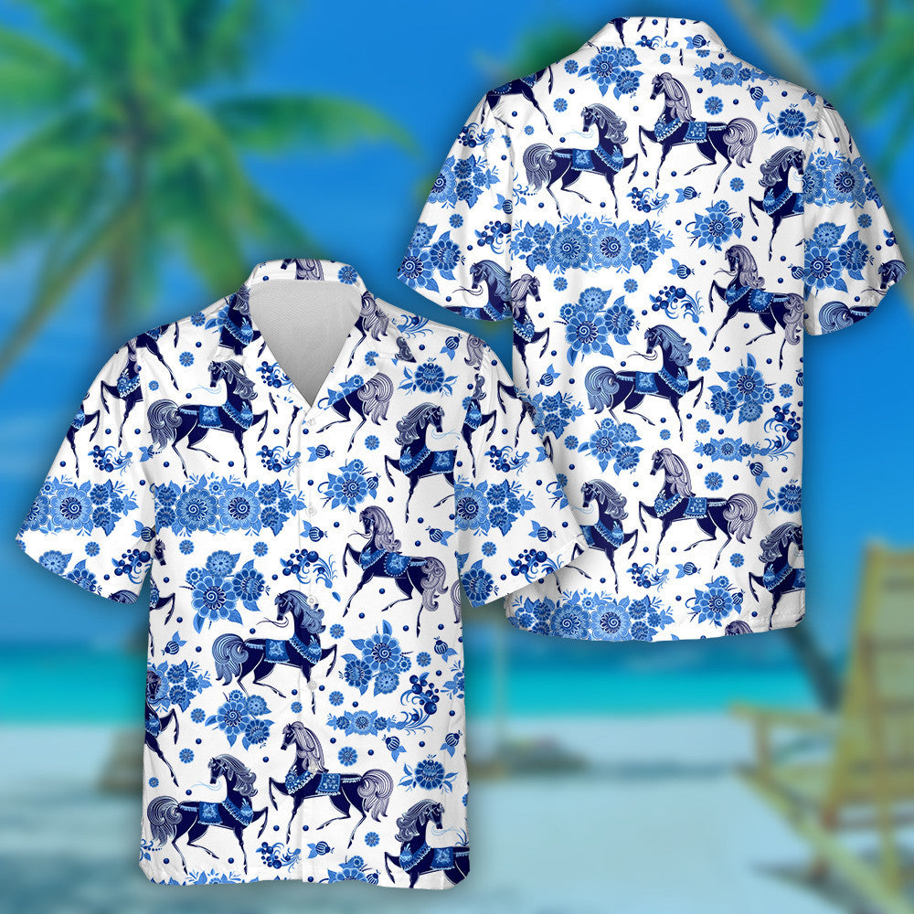 Fashion Texture With Stylized Horses And Flowers Hawaiian Shirt, Hawaiian Shirt Gift, Christmas Gift